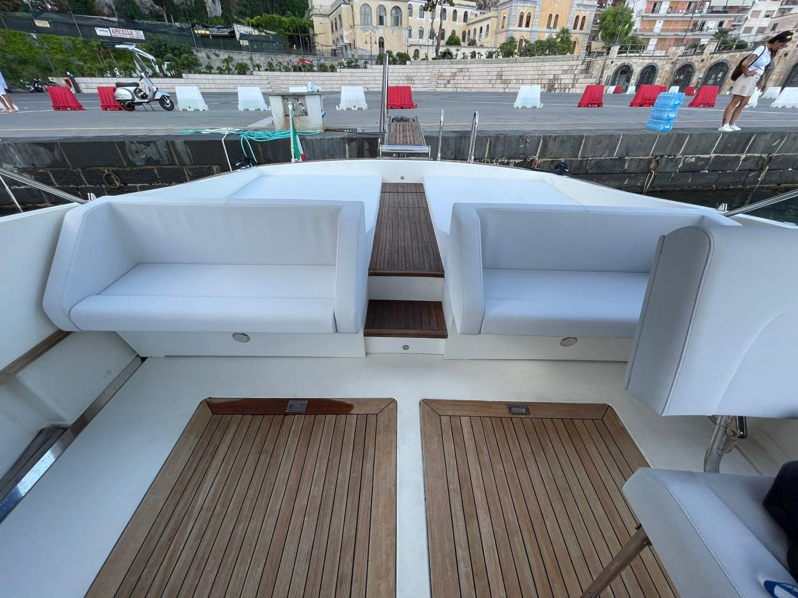 2022 : Auvent et pare-brise neufs. Rénovation des coussins et canapés du cockpit. Modification du bain de soleil arrière avec passerelle centrale en teck.