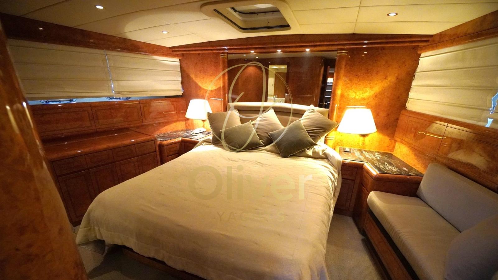 La cabine du propriétaire, située à l’avant, dispose d’un lit double péninsule, d’un mobilier élégant et d’une salle de bains privative avec toilettes, bidet et cabine de douche. La cabine VIP est équipée d’un lit double et d’une salle de bain privée, tandis que la cabine double dispose de deux lits simples au sol et d’une salle de bain privée.