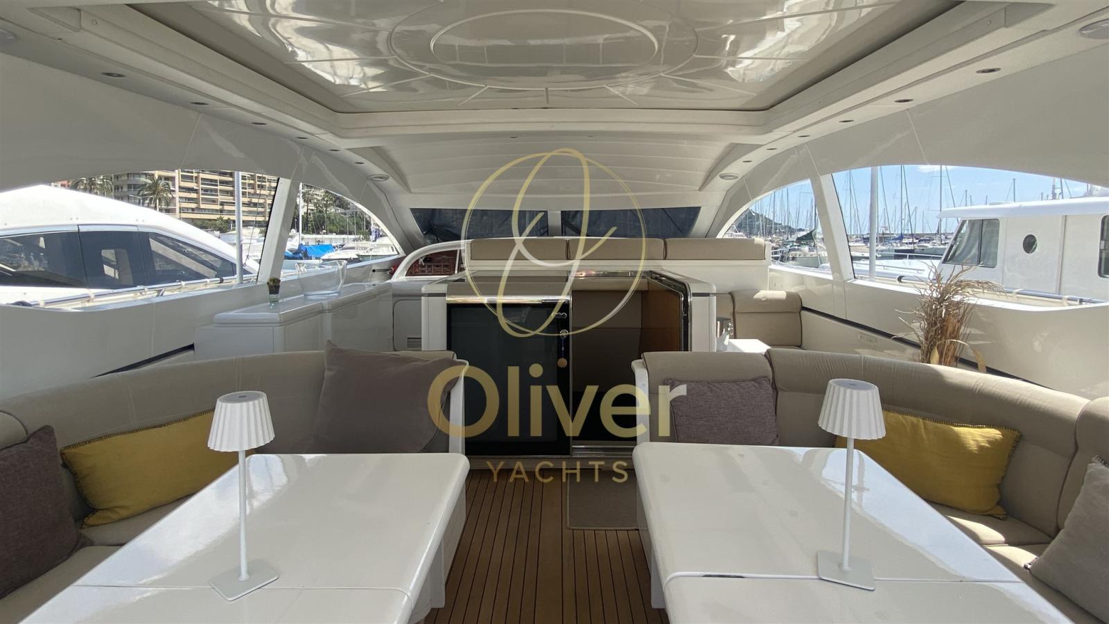 Alarme gaz, Alarme moteur, Alarme de pompe de cale, Alternateur, Ouverture du compartiment moteur électrique, Eau sous pression, Trim hydraulique, 12 Batteries, Douche de cockpit, Phares fixes arrière, Phare de poursuite, Garage à annexe, Bossoirs pour annexe, Hard top, Extincteur(s) fixe(s), Indicateurs de flaps, Ber, Lavage de chaine, Lavabo dans le cockpit, Éclairage de courtoisie, Passerelle, Plateforme arrière, Pompe de cale automatique, Pompe de cale manuelle, Pont en teck, Porte latérale, Cockpit en teck, Prise de quai, Connexion eau sous pression à quai, Onduleur, Guindeau Hydraulique, Echelle de bain, Selles pour Annexe, Système de filtration des eaux usées, table de cockpit, Corne, T-Top, Winch électrique arrière, Winch électrique avant.