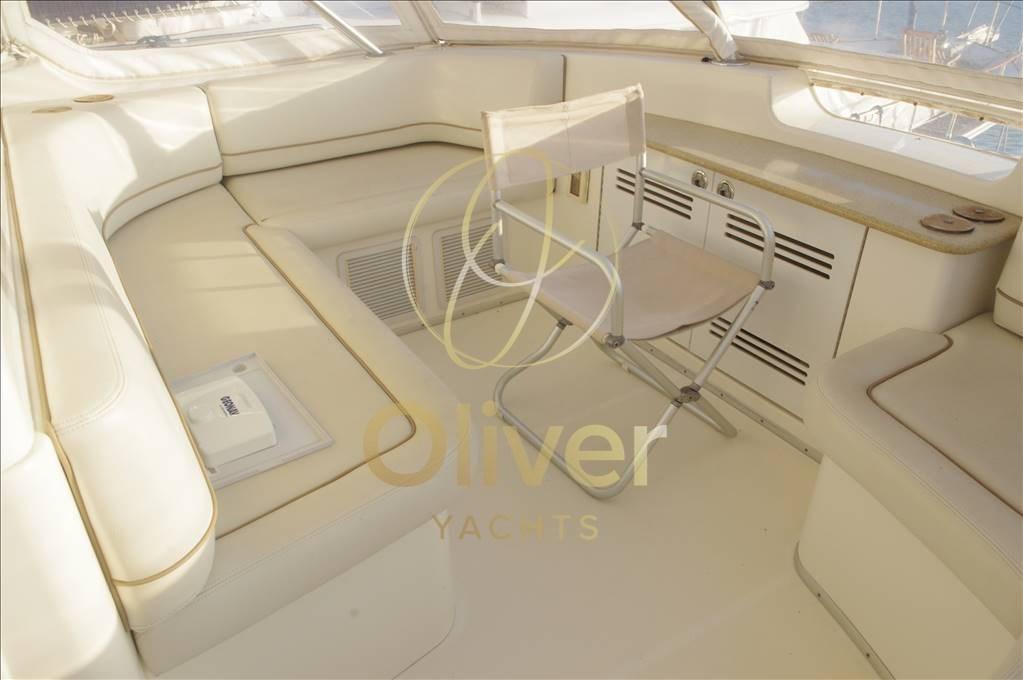 À l’intérieur, la première chose qui attire l’attention est certainement l’espace et le confort : trois cabines plates avec deux salles de bains équipées et cabines de douche, une cuisine avec plaques vitrocéramiques électriques et quatre réfrigérateurs à caissons. Une télévision rétractable et des canapés en Ultraleather avec chaises longues font de ce bateau l’un des meilleurs endroits pour passer votre temps.
