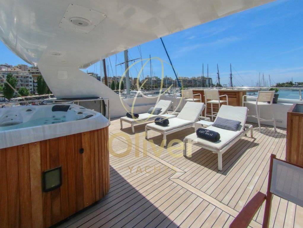 Lady Malak est un impressionnant yacht à moteur d’une longueur totale de 32 mètres. Construit par le célèbre chantier naval italien CBI Navi en 2001, le Lady Malak est un véritable chef-d’œuvre d’ingénierie et de design. Avec une largeur de 7,2 mètres et un tirant d’eau de 2,3 mètres, il affiche un volume impressionnant de 244 GT ce qui le rend exceptionnellement spacieux et élégant sur l’eau. Le design et les équipements sont savamment conçus sur mesure pour permettre aux clients d’explorer les merveilles de la mer avec style et confort.