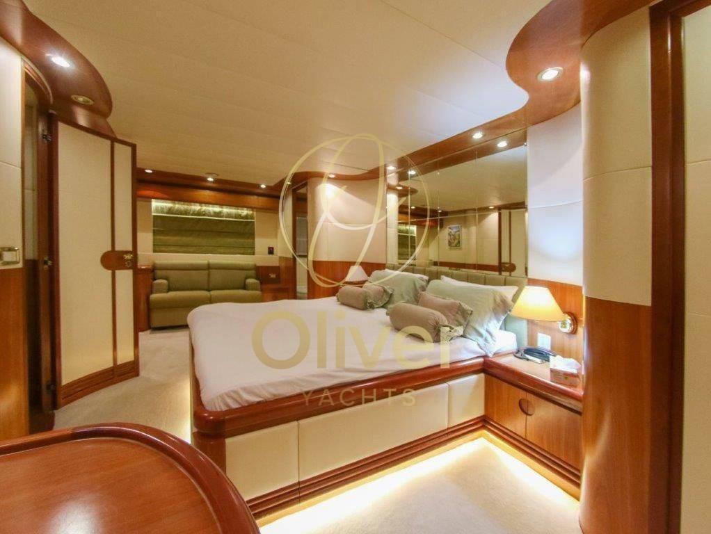 L’hébergement à bord comprend une luxueuse suite parentale située au niveau du pont. Cette suite spacieuse dispose d’un design sur toute la largeur et d’une salle de bains en duplex pour offrir un maximum de confort et d’intimité.