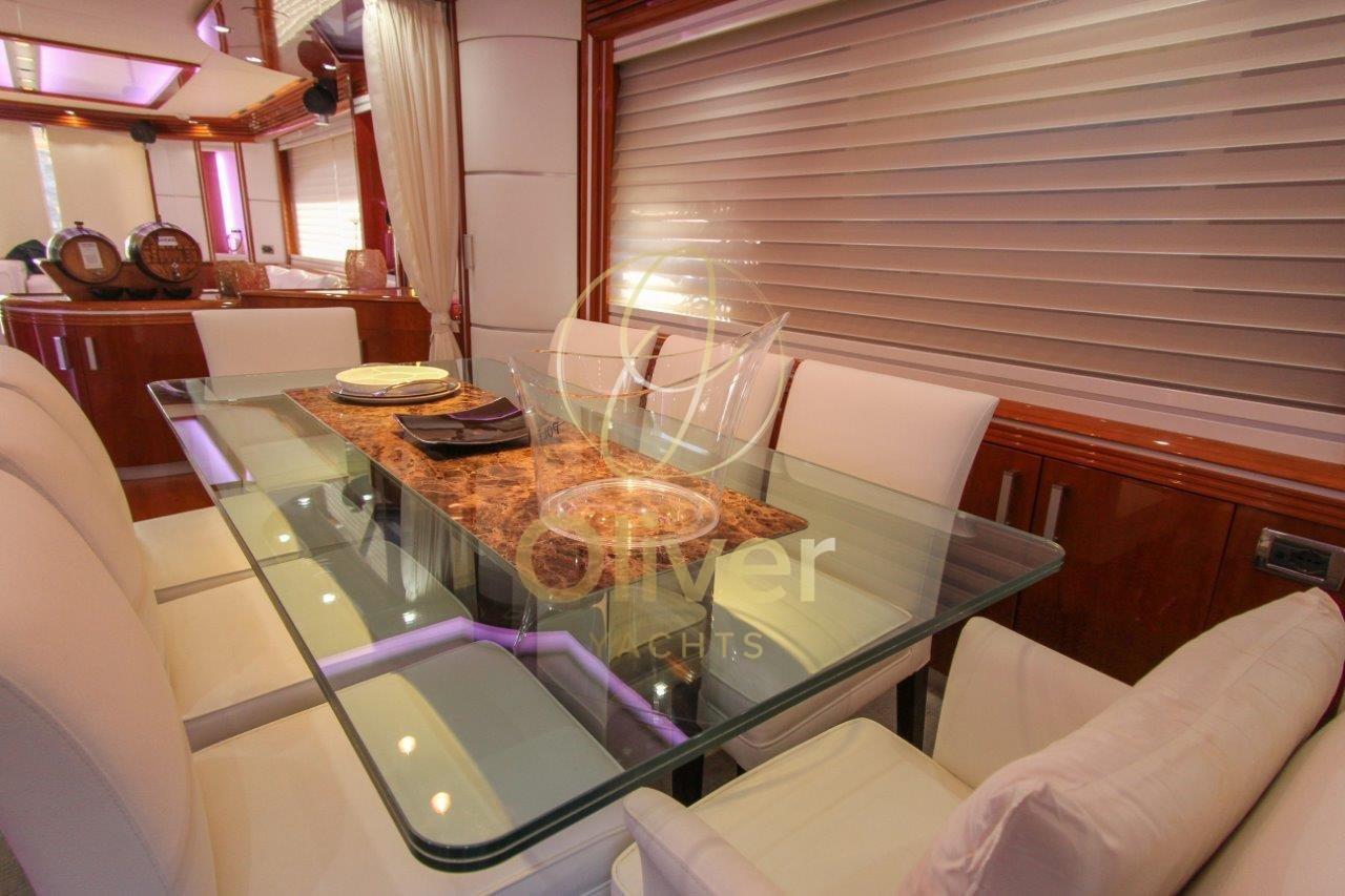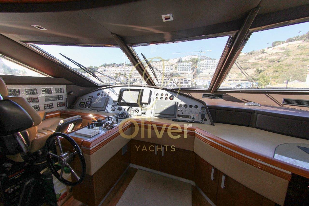 Alarme gaz, Alarme moteur, Alarme de pompe de cale, Ouverture du compartiment moteur électrique, Eau sous pression, Trim hydraulique, Passavant en teck, Douche de cockpit, Double barre à roue, Phares fixes arrière, Phare de poursuite, Flaps hydrauliques, Bossoirs pour annexe, Hard top, Extincteur(s) fixe(s), Indicateurs de flaps, Lavage de chaine, Éclairage de courtoisie, Spots sous-marins, Passerelle, Pompe de cale automatique, Porte latérale, Cockpit en teck, Prise de quai, Connexion eau sous pression à quai, Répétiteur électronique, Guindeau Hydraulique, Echelle de bain, Système de filtration des eaux usées, table de cockpit, Table pliante de salon, Corne, Pont en teck, Winch électrique arrière, Winch électrique avant.