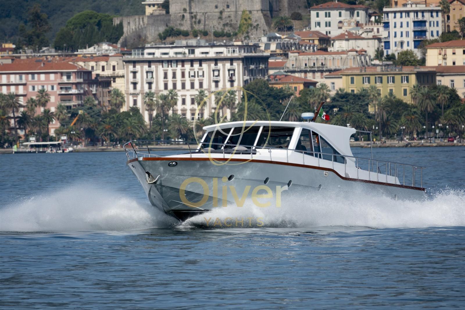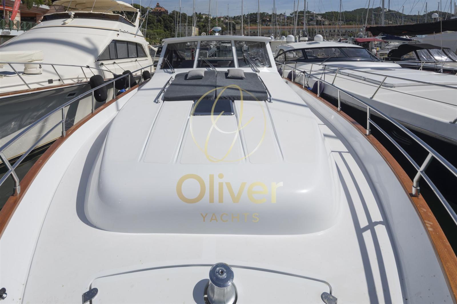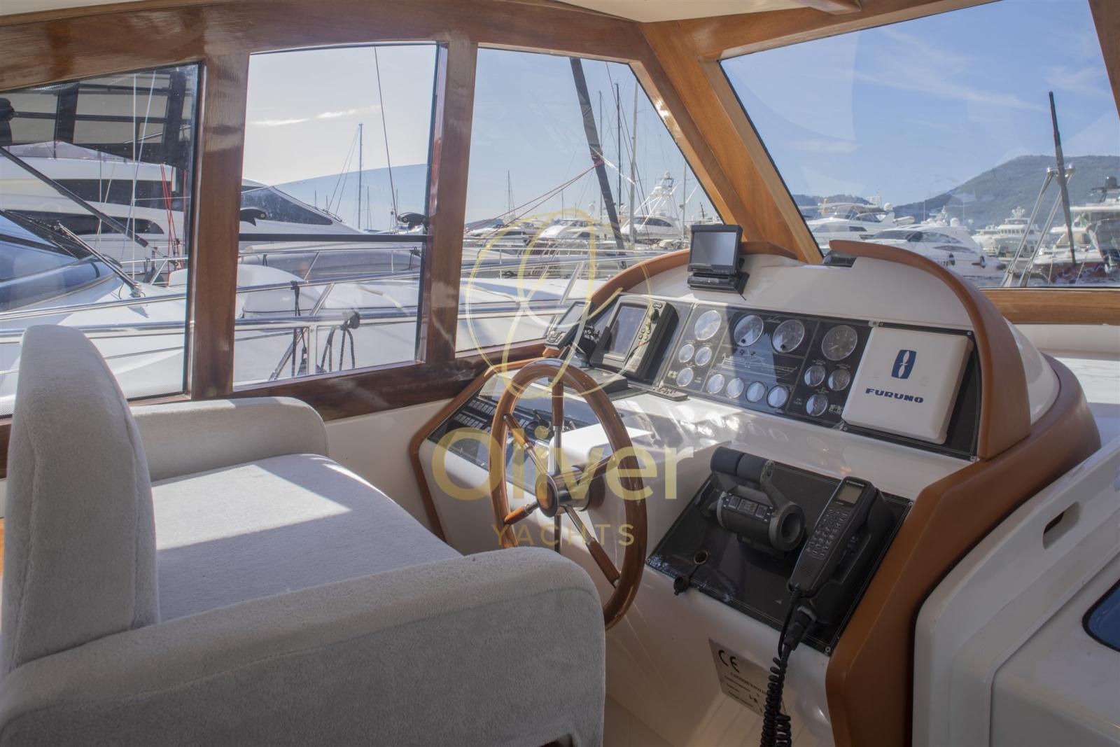 Alarme gaz, Alarme moteur, Alarme de pompe de cale, Eau sous pression, Douche de cockpit, Phare de poursuite, Hard top, Lavabo dans le cockpit, Éclairage de courtoisie, Passerelle (Besenzoni), Plateforme arrière (Fissa), Pompe de cale automatique, Pompe de cale manuelle, Porte latérale, Cockpit en teck, Prise de quai, Connexion eau sous pression à quai, Guindeau électrique, Echelle de bain, table de cockpit, Corne.