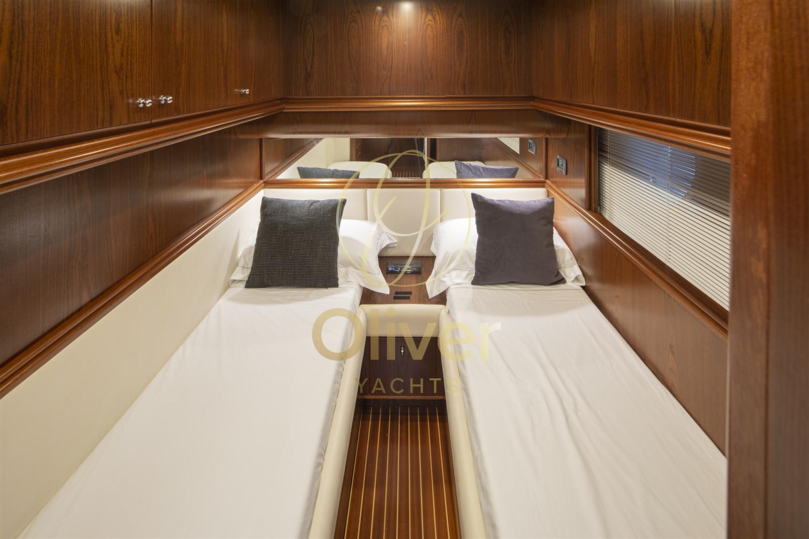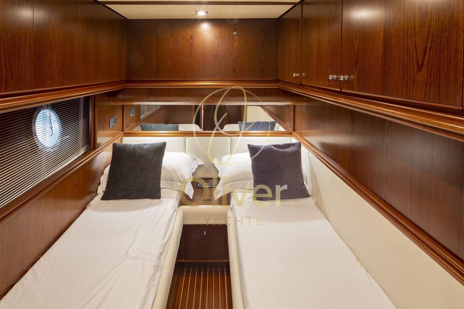 Les intérieurs avec trois cabines rénovées en conservant le style moderne et accueillant, toutes avec salle de bain privée garantissent un confort inégalé. La cabine du propriétaire avec accès indépendant offre au propriétaire intimité et tranquillité en même temps. Le nouveau système électrique et le remplacement de la moquette contribuent à créer un environnement raffiné et fonctionnel à bord. La cabine de l’équipage dispose également d’une salle de bain attenante et peut accueillir deux personnes dans des lits superposés.