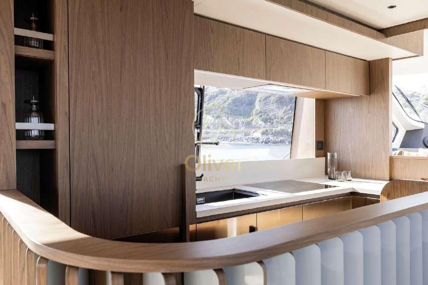 • Espaces : Le Fly 72 est un véritable bijou de la mer, avec de grands espaces à l’intérieur et à l’extérieur. Le flybridge, en particulier, est un véritable salon extérieur, parfait pour se détendre et profiter de la vue panoramique.