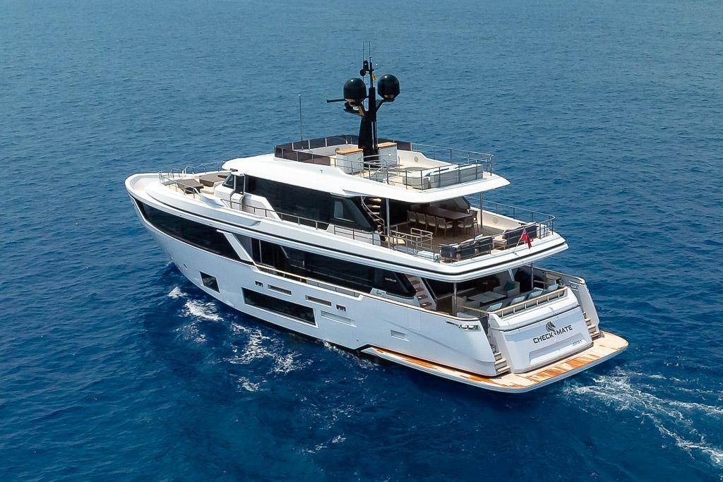 Checkmate est un Navetta 30 construit par Custom. Il s’agit d’un yacht à moteur à trois ponts semi-cylindré parfait pour les longues croisières. Ses grands volumes et son système de stabilisation complet font de ce yacht le choix parfait pour les longues croisières en tout confort et silence. Ses deux moteurs diesel MAN permettent une autonomie de 2.000 nm à 10 kn.