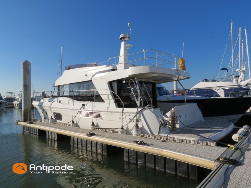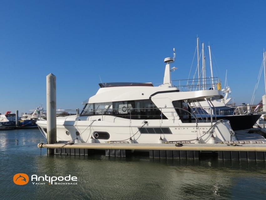 SWIFT TRAWLER 47, 2021, 1ère main, reprise possible, 2 X CUMMINS QSB6.7, 425 cv (333 h), Propulseur d'étrave et poupe, Aménagement intérieur 1 cabine propriétaire avant, 1 cabine VIP à babord avec 2 lits simples, 1 cabine double à tribord avec lit double, Menuiseries intérieures Chêne Dosse, Sofa convertible en couchette double, Rideau de séparation salon / cuisine, Moquette cabines et coursives - Dune Berber, Passavants babord bois massif, Fond de cockpit latté bois massif, Plateforme de bain hydraulique, Ensemble de housses de fly (console + banquette + table), Coussins bains de soleils pont avant avec housse, Coussins de banquette cockpit, Pilote automatique in board Raymarine, 2 écrans intérieurs 12 p - Raymarine Hybridtouch, 2 écrans au flying bridge 12 p - Raymarine Hybridtouch, Cartographie électronique - Navionics Platinium, Radar - Raymarine, Récepteur AIS, VHF - Raymarine, Caméra arrière - Raymarine, Système audio Fusion, Serveur Web AMS (ship control), Télévision dans le carré - Samsung, Télévision cabine propriétaire - Samsung, Lecteur DVD, Unité réfrigérante 12 V portes frontales 2 tiroirs - 144 l, Unité réfregirante, freezer et icemaker timonerie babord, Unité réfrigérante - 40 l Flying bridge, Plaque à induction 3 feux, Grill électrique au fly, Prise de quai 220 V + chargeurs de batteries - 2 X 25 amp, 2 batteries servitude supplémentaires - 2 X 140 amp, Convertisseur 12 V / 220 V - 2 kVA, Chauffage à eau, Générateur fixe 220 V - Cummins 7.7 kVA (89 h), WC électriques eau douce et eau de mer - X 2, Projecteur de pont double poste, Pompe de lavage de pont, Prise eau douce de quai, Radeau de survie - Plastimo > 24 h 8 p, Mouillage principal ancre DELTA, 2 coupes orins, Visible Bretagne, leasing TVA 10 %. Pour plus d'informations ou pour fixer un rendez-vous de visite, contact : Jérôme Le Joubioux 06 07 45 71 73 - [email protected]
