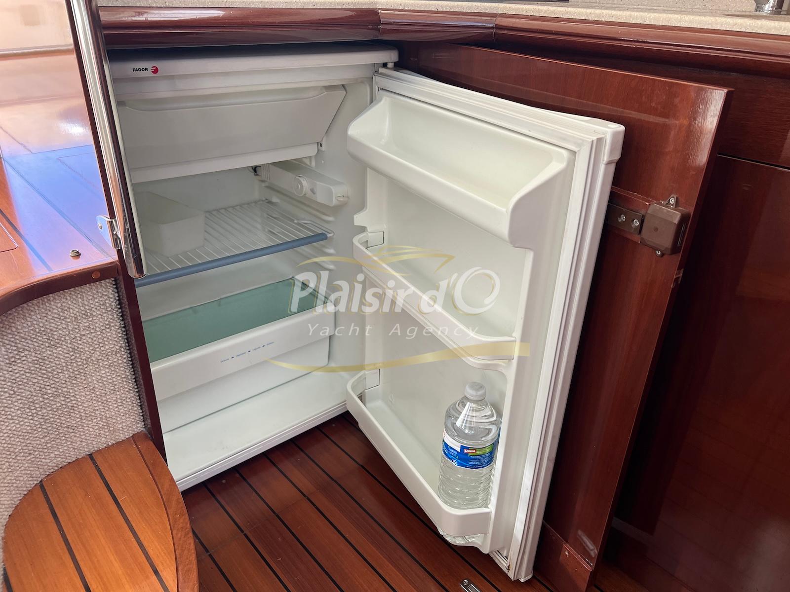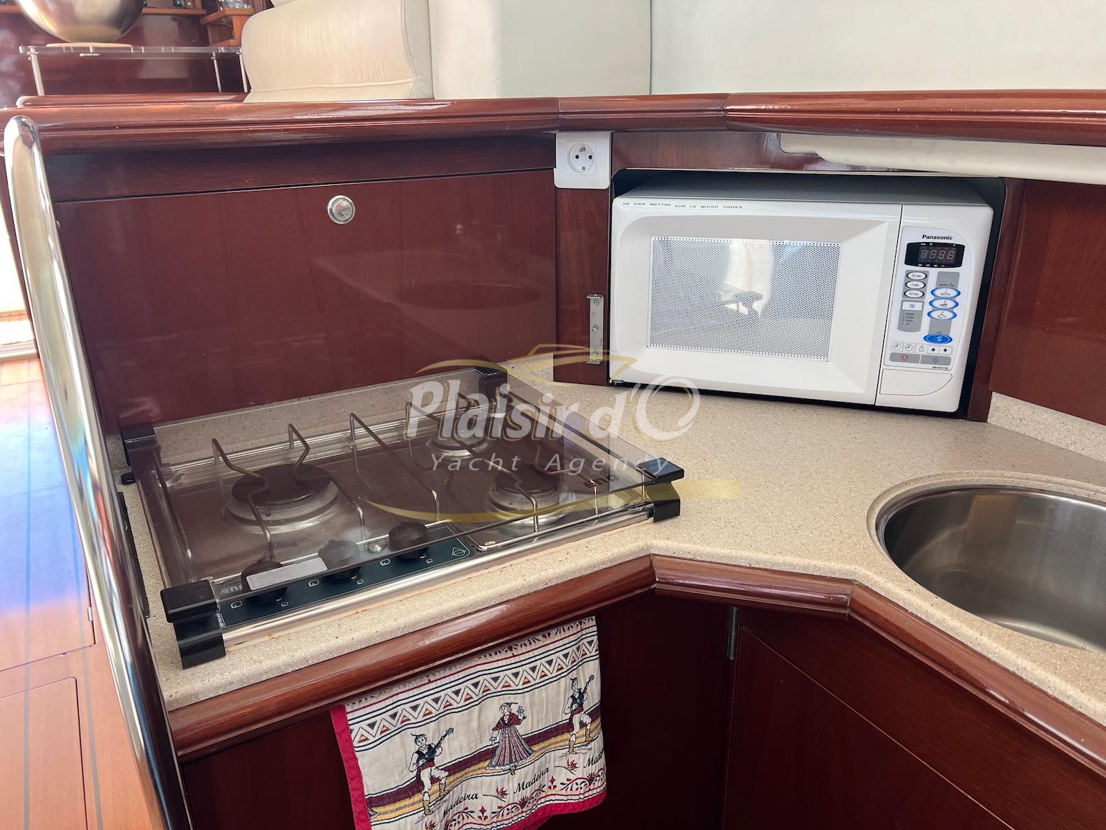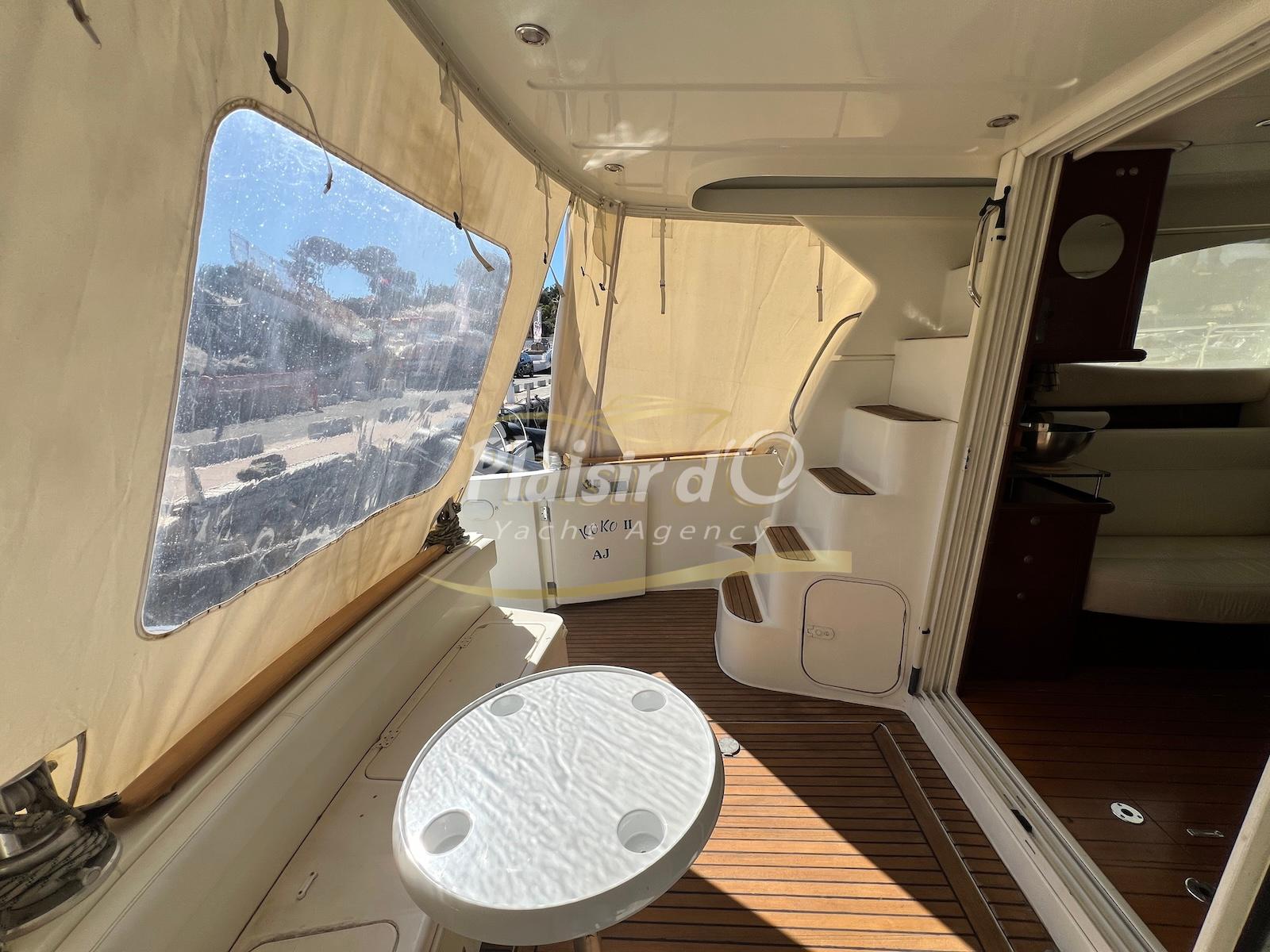 NOMBREUSES OPTIONS : Passerelle hydraulique Opacmare, propulseur d’étrave, pilote automatique, taud de camping, taud d’hivernage au flybridge, ancre Inox 16kg, VHF + Navtex, TV…
