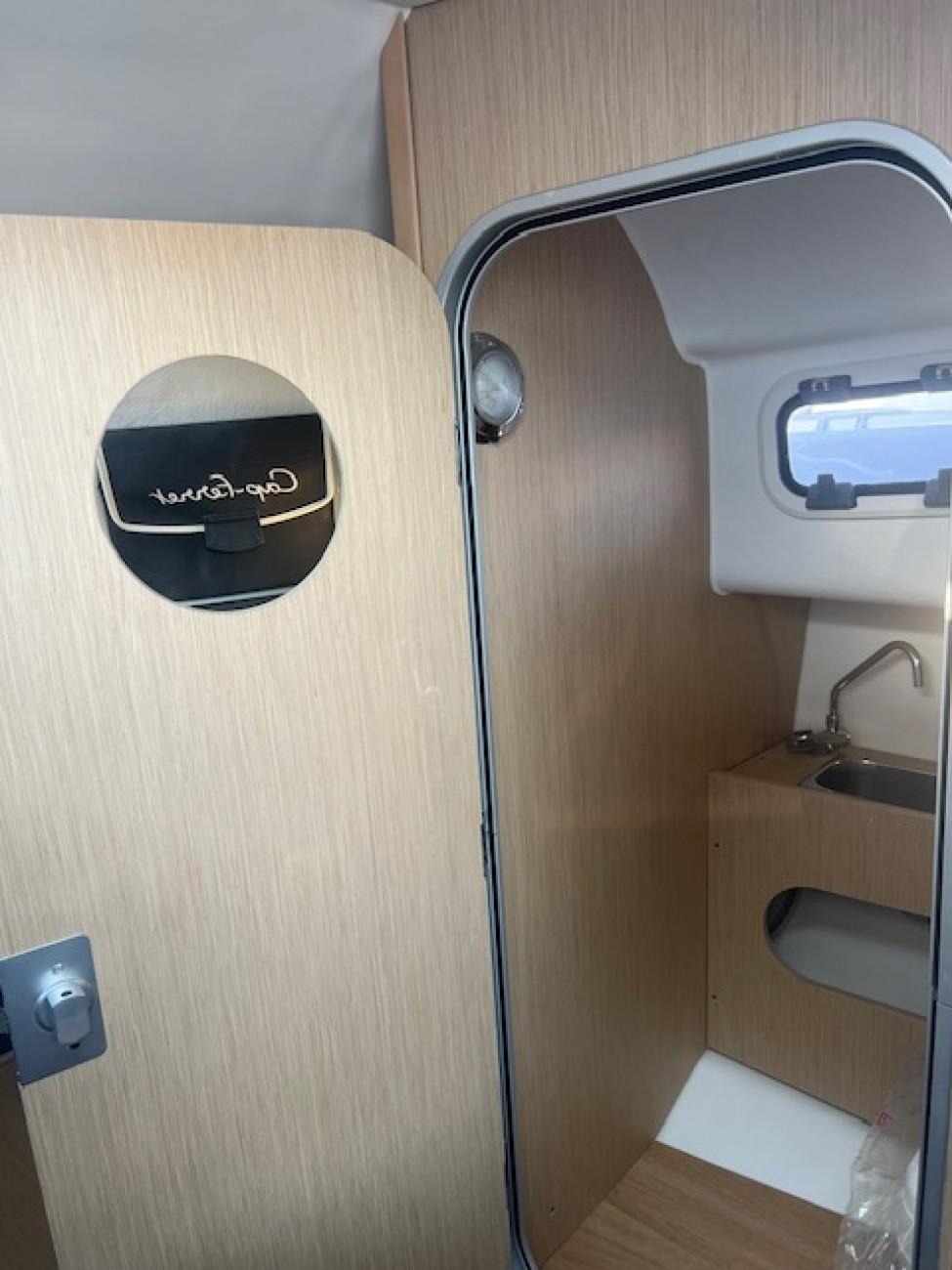 BAIN DE SOLEIL AVANT/BAIN DE SOLEIL ARRIERE/SIEGES PILOTE ET CO-PILOTE BOLSTER/DOUCHETTE DE COCKPIT AVEC RESERVOIR EAU 70L/RESERVOIR CARBURANT 186L/DIRECTION HYDRAULIQUE/CUISINE EXTERIEURE AVEC EVIER ET RECHAUD/TABLE DE COCKPIT AMOVIBLE/COFFRES DE RANGEMENT/4 COUCHETTES/HUBLOTS/WC CHIMIQUE
