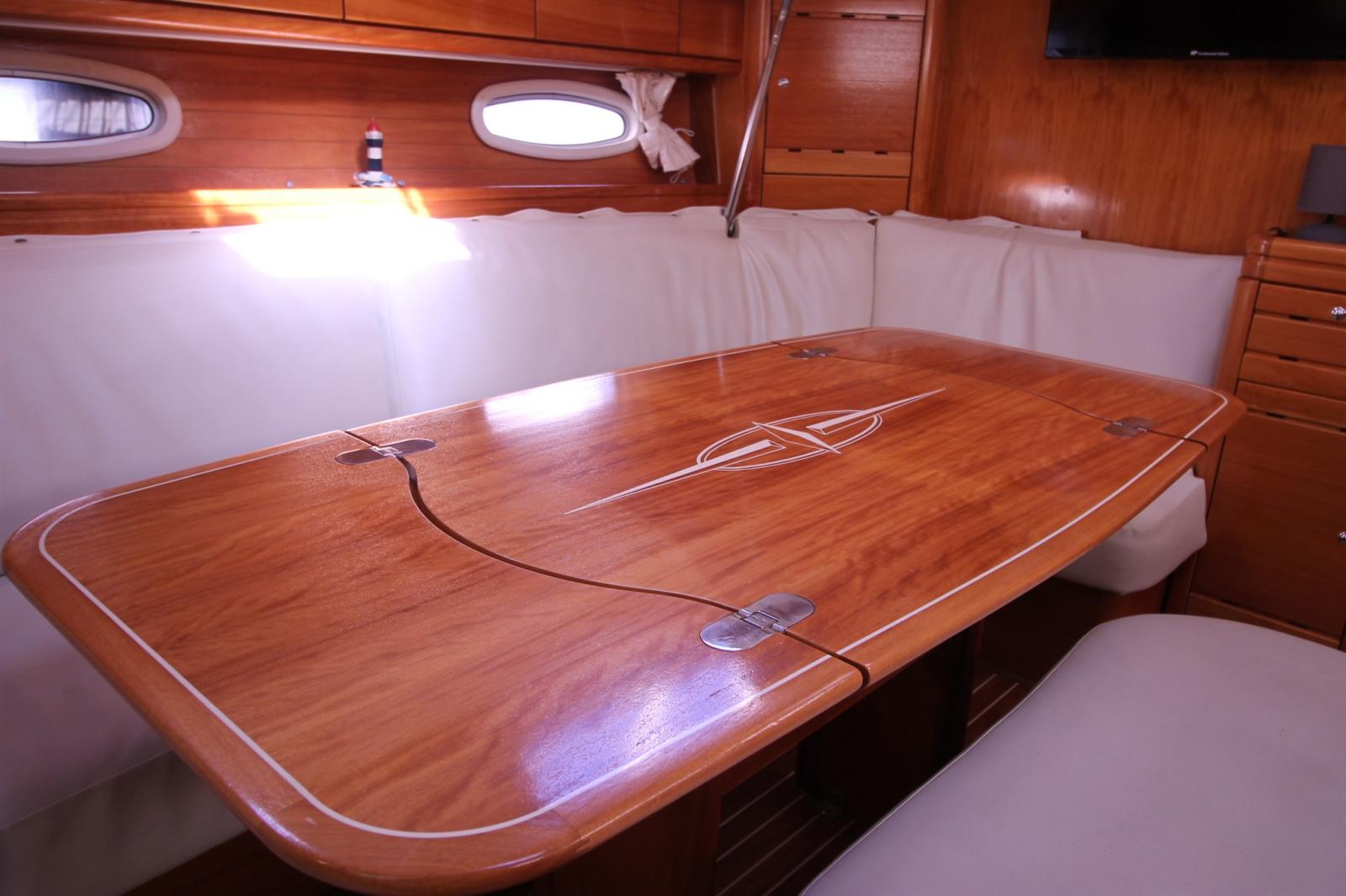 Alarme moteur, Ancre (DELTA (charrue)), Batteries (servitude : remplacées en 2020. moteur remplacée en 2024), Passavant en teck, Chargeur de batterie (45ah), Douche de cockpit (avec eau chaude), Double barre à roue, Moteur d'annexe (yamaha 4t 5cv), 2 Passerelle (aluminium dont 1 pliable), Pompe de cale manuelle, 2 Porte latérale, Prise de quai, Guindeau électrique (1200w chaine de 10), Chaise support HB, table de cockpit (refait entièrement en teck), Annexe (2,5m plancher gonflable).