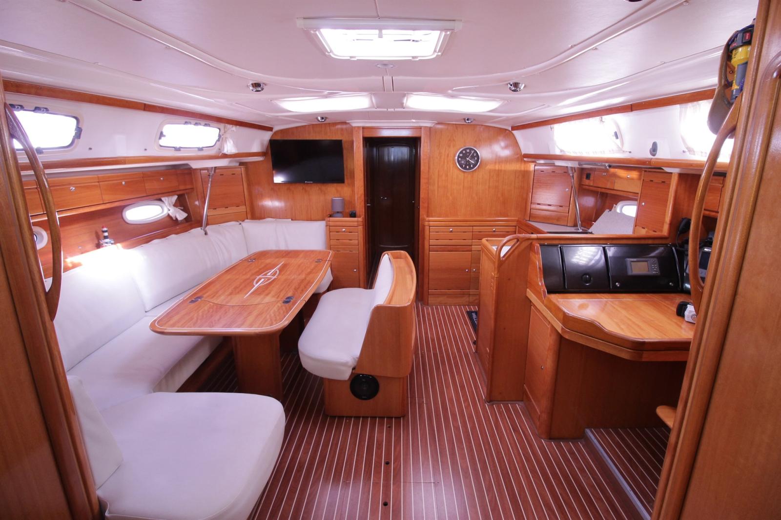 PHILIPPE PLAISANCE a le plaisir de vous proposer un très joli BAVARIA 50 CRUISER. 1ere main, jamais loué, ce solide voilier en 5 cabines est dans un très bon état général. Son espace de vie, ses rangements et son ergonomie sont excellents. Le moteur très bien entretenu (1800h) , haubanage remplacé, étai largable + voiles de brises, dessalinisateur, groupe électrogène, option 2 frigos, radar etc… place de port et mise en main possible.
