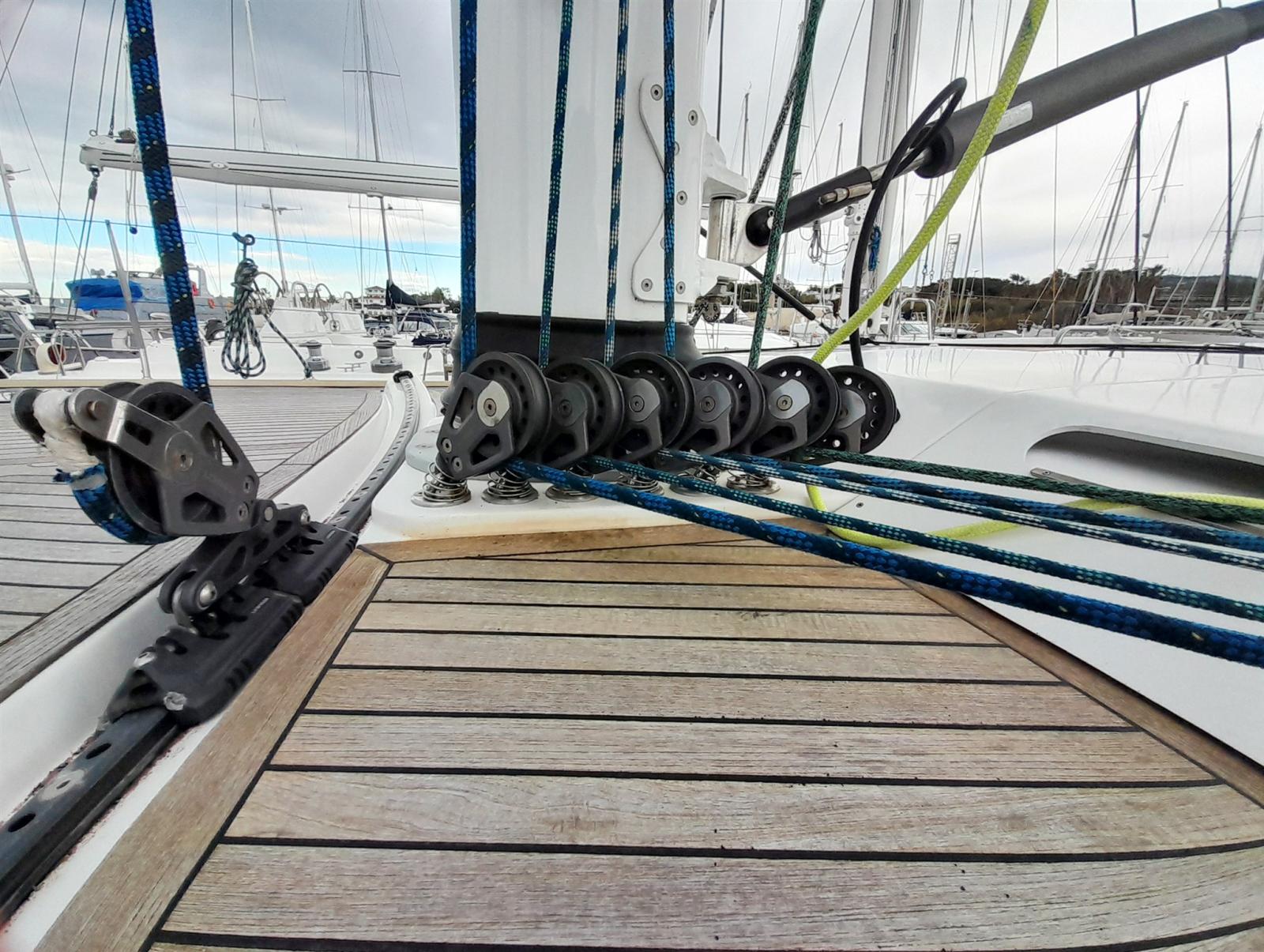 Passavant en teck, Douche de cockpit, Double barre à roue, Garage à annexe, Spots sous-marins, Passerelle (Idraulica), Plateforme arrière (idraulica con telecomando), Pompe de cale manuelle, Cockpit en teck, Guindeau électrique, Echelle de bain, table de cockpit, Annexe, 6 Winch électrique.