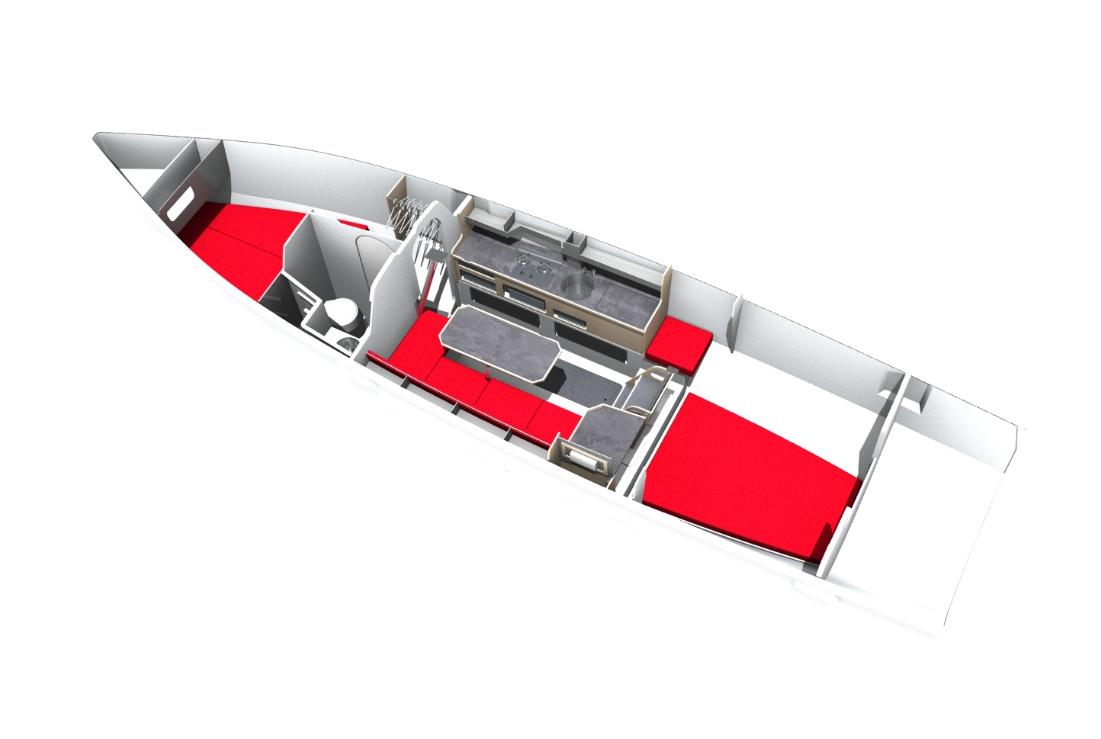 - Equipement de confort: Circuit électrique 12V avec éclairage à LED, feu de mat et éclairage du compas, batterie de service.