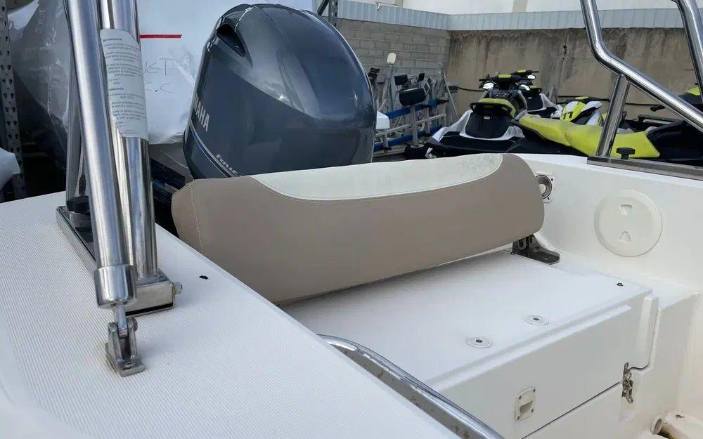 Sous le capot, un moteur Yamaha 130 CV essence, performant et fiable, totalisant seulement 850 heures. Du côté du confort : coussins de cockpit, bain de soleil à l’arrière, douchette à eau douce, bimini top, taud de soleil… Niveau pratique : pompe de cale, batteries de service, compas, équipement de sécurité complet. Prendre le large n’aura jamais été aussi simple.