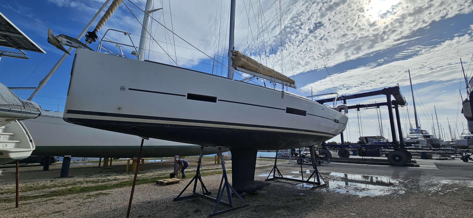 Croisière haut de gamme avec ce Dufour 412 2016 ! Cockpit teck, plateforme de bain, 3 cabines spacieuses, équipement complet (guindeau électrique, pilote auto Raymarine, propulseur d'étrave). Entretien suivi : voiles neuves, batteries récentes. Prêt pour vos plus belles navigations. 137 000€.
