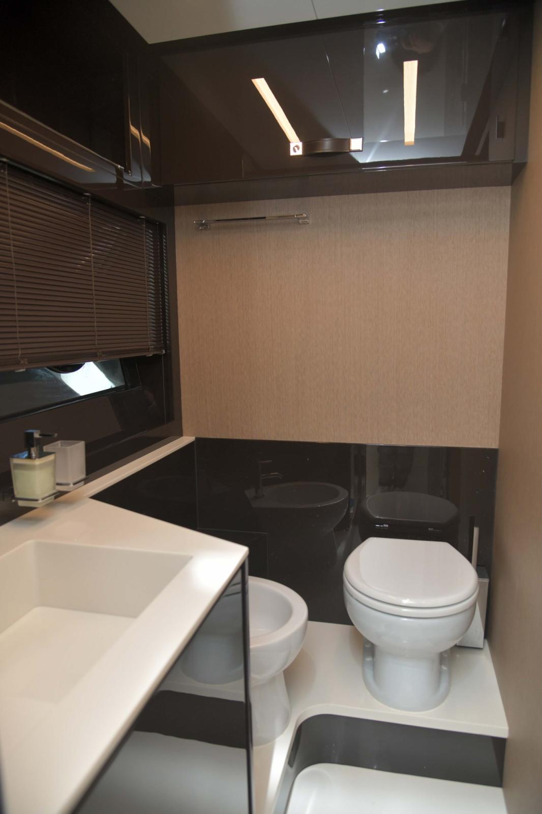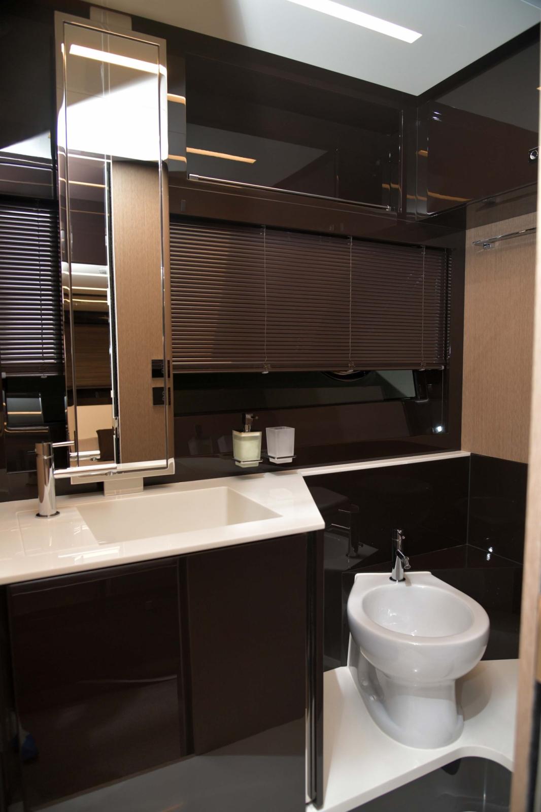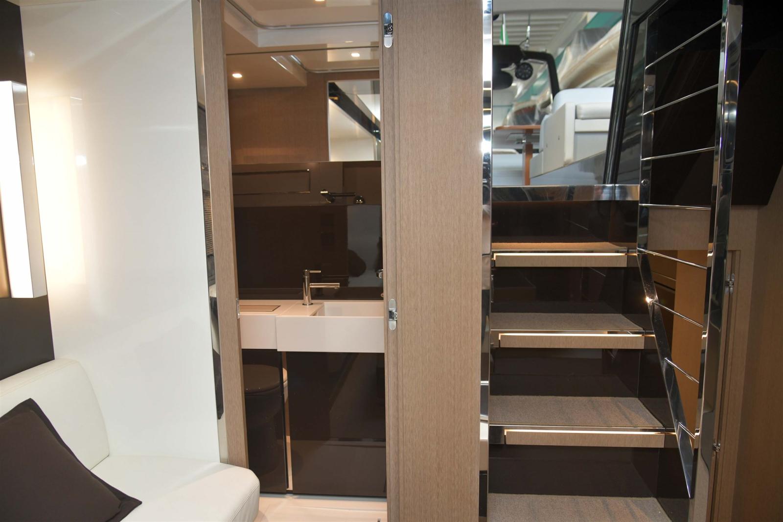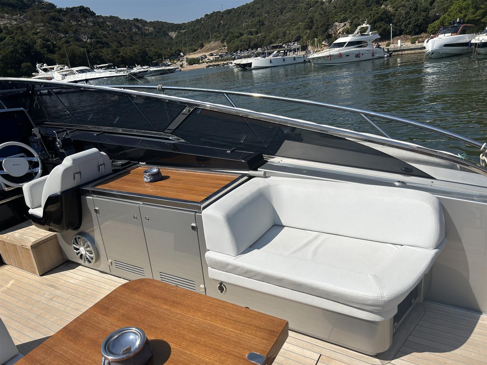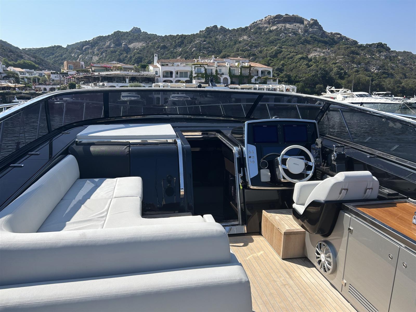 Alarme gaz, Alarme moteur, Alarme de pompe de cale, Ancre (In acciaio), Eau sous pression, Trim hydraulique, Taquets pliants, Passavant en teck, Douche de cockpit, Phare de poursuite, Flaps hydrauliques, Extincteur(s) fixe(s), Indicateurs de flaps, Lavage de chaine, Lavabo dans le cockpit, Éclairage de courtoisie, Passerelle (a scomparsa), Plateforme arrière, Pompe de cale automatique, Pompe de cale manuelle, Porte latérale, Cockpit en teck, Prise de quai, Connexion eau sous pression à quai, Onduleur, Guindeau électrique, Echelle de bain (Elettrica), Système de filtration des eaux usées, Stabilisateurs (Seakeeper), Chaise support HB, table de cockpit (Con prolunghe), Filières avec sortie latèrale, Corne, Winch électrique arrière, Winch électrique avant.