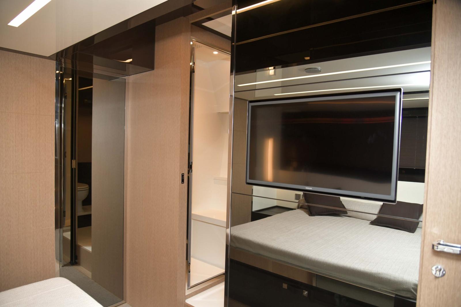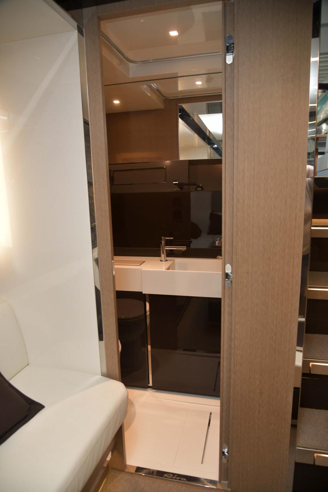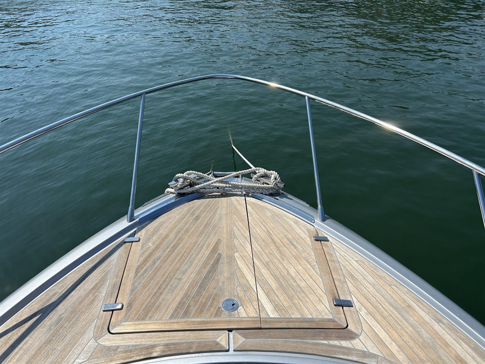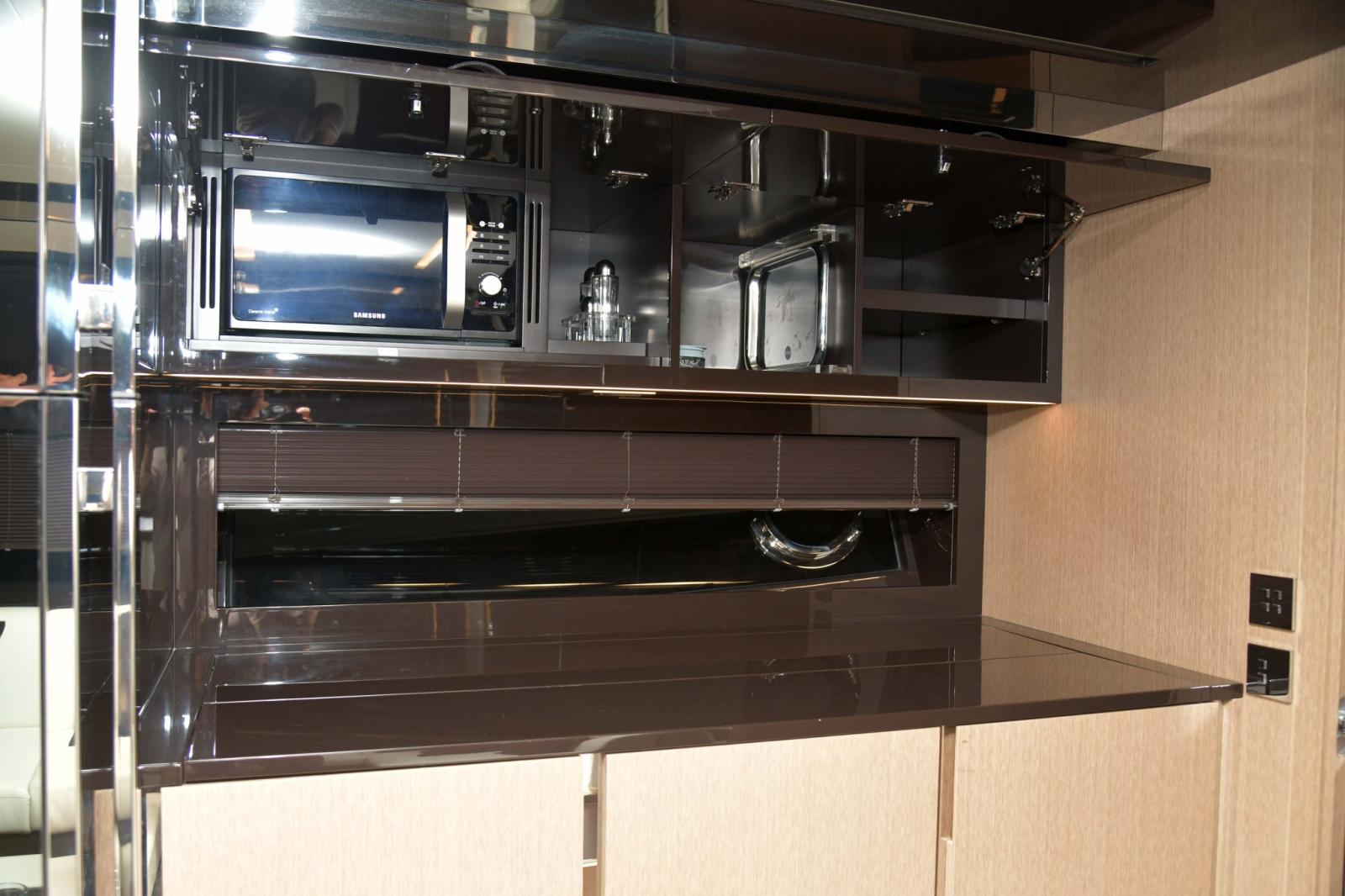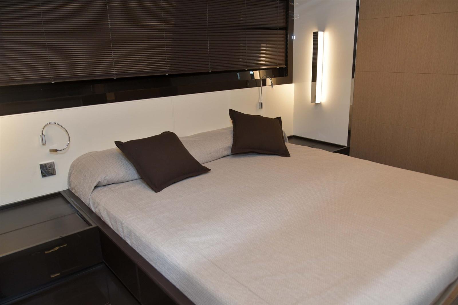 Alarme gaz, Alarme moteur, Alarme de pompe de cale, Ancre (In acciaio), Eau sous pression, Trim hydraulique, Taquets pliants, Passavant en teck, Douche de cockpit, Phare de poursuite, Flaps hydrauliques, Extincteur(s) fixe(s), Indicateurs de flaps, Lavage de chaine, Lavabo dans le cockpit, Éclairage de courtoisie, Passerelle (a scomparsa), Plateforme arrière, Pompe de cale automatique, Pompe de cale manuelle, Porte latérale, Cockpit en teck, Prise de quai, Connexion eau sous pression à quai, Onduleur, Guindeau électrique, Echelle de bain (Elettrica), Système de filtration des eaux usées, Stabilisateurs (Seakeeper), Chaise support HB, table de cockpit (Con prolunghe), Filières avec sortie latèrale, Corne, Winch électrique arrière, Winch électrique avant.