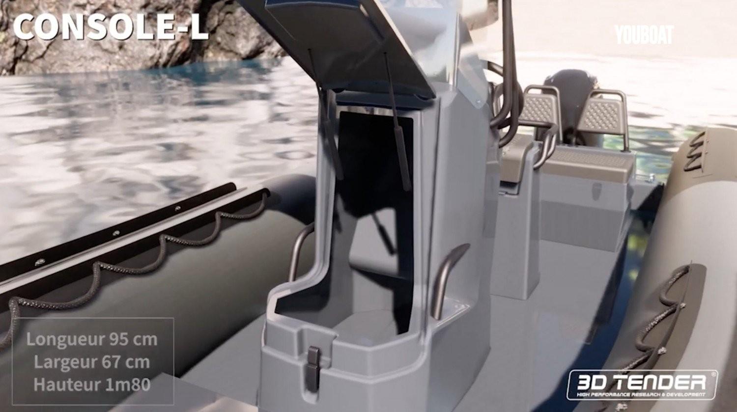 console L avec grand coffre avant, siège pilote L avec double coffre et table basculante, poignée de protage, taquet rétractable, gonfleur, réservoir 100 Litres avec jauge, échelle de bain