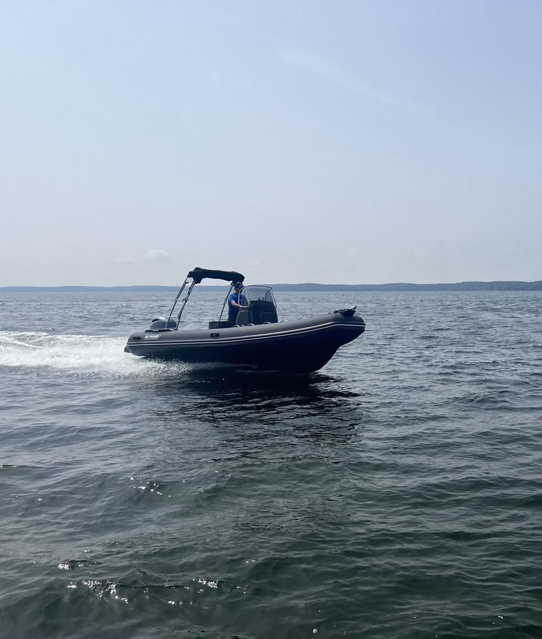 Tissus hypalon néoprène, pont auto videur, bain de soleil avant King Size, davier d'étrave, console avec pare brise enveloppant, siège pilote bolster, banquette arrière,