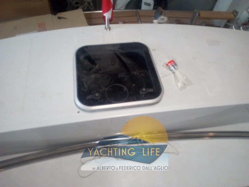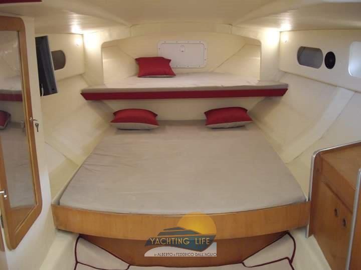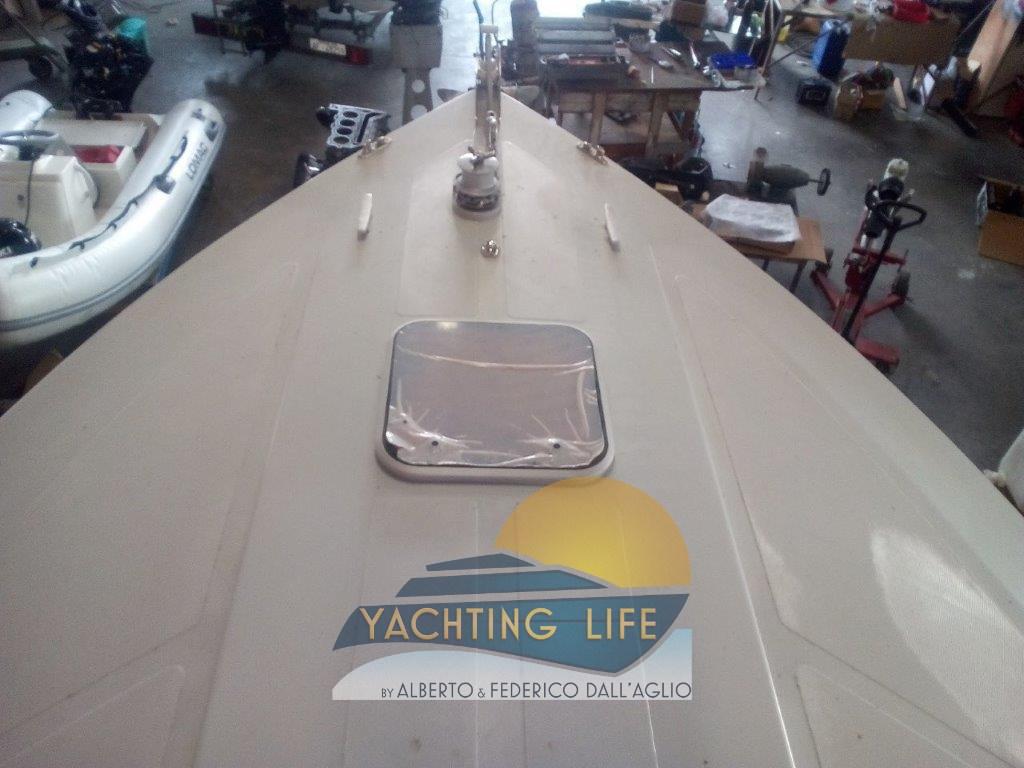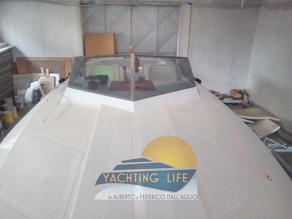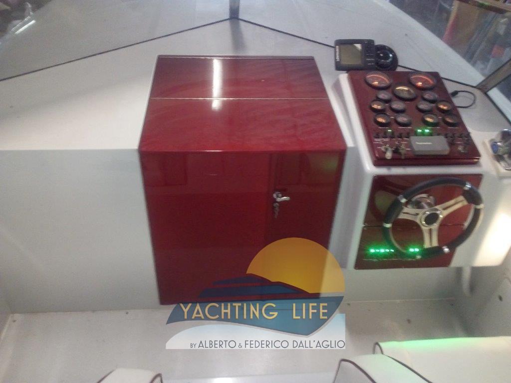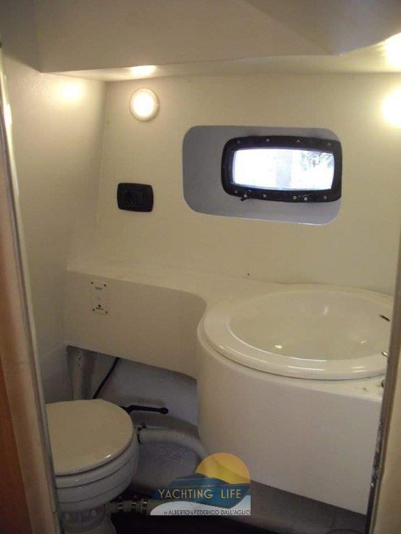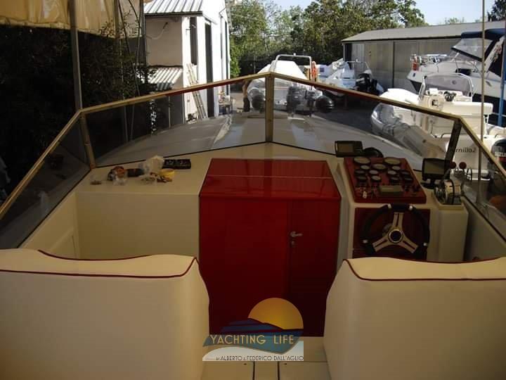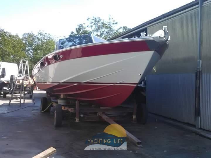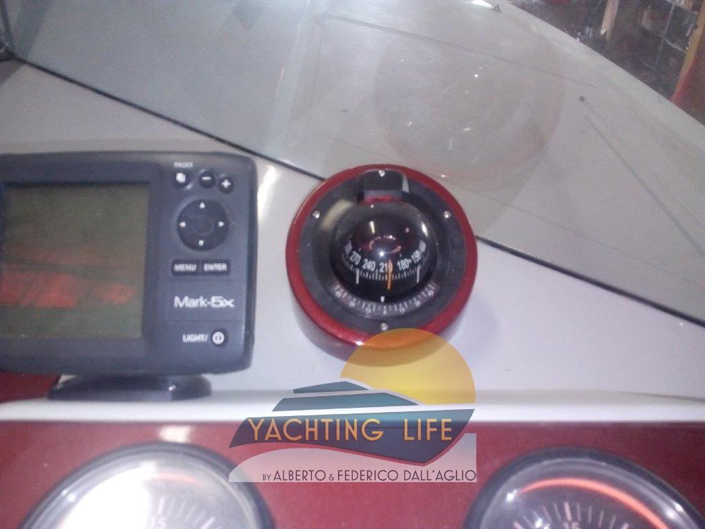 Eau sous pression, Couleur spéciale (Bianca e rossa), Douche de cockpit, Flaps hydrauliques, Plateforme arrière (Di poppa in acciaio inox e teak nuova), Pompe de cale automatique, Porte latérale, Prise de quai, Guindeau électrique, Echelle de bain, Corne.