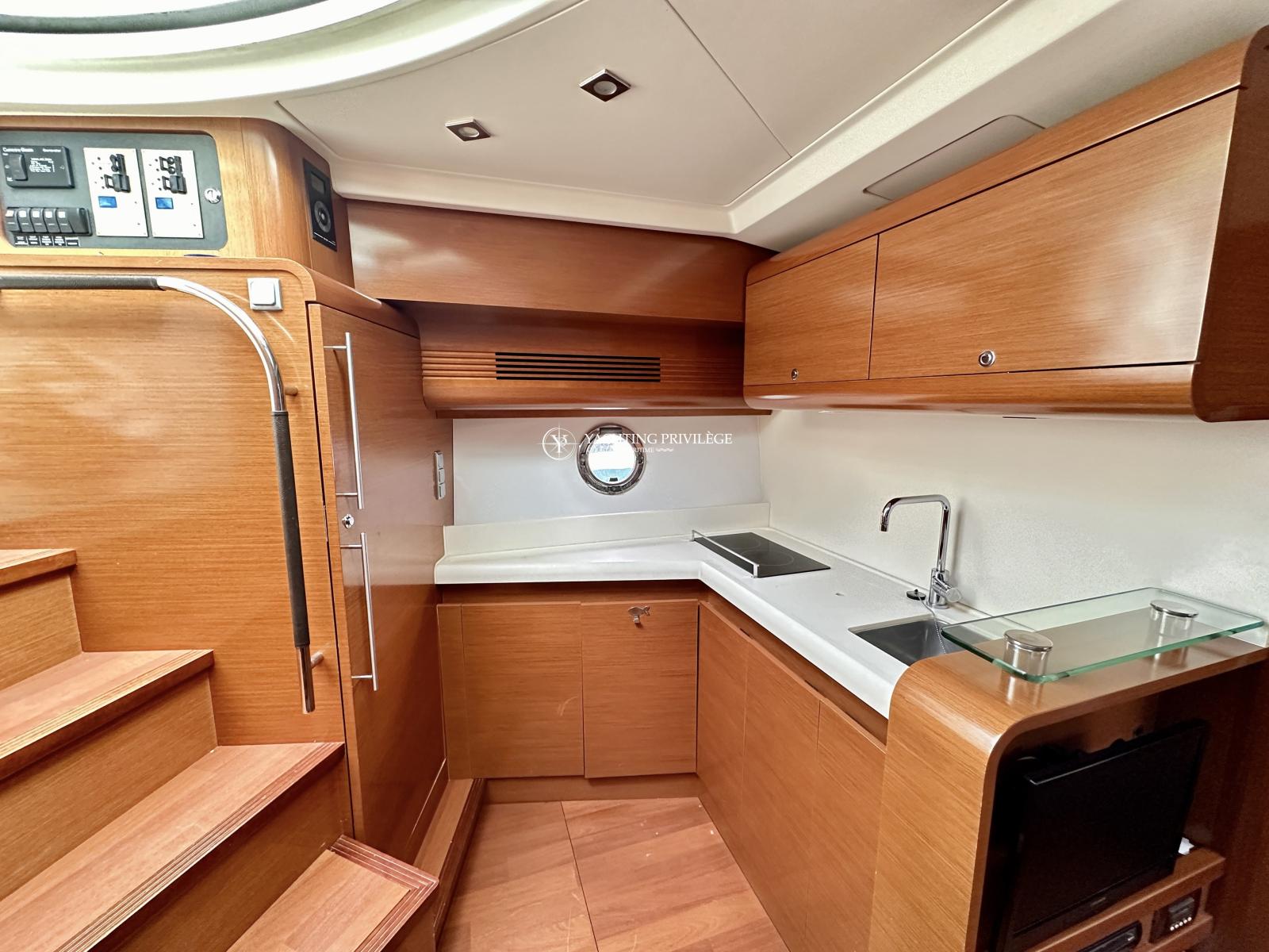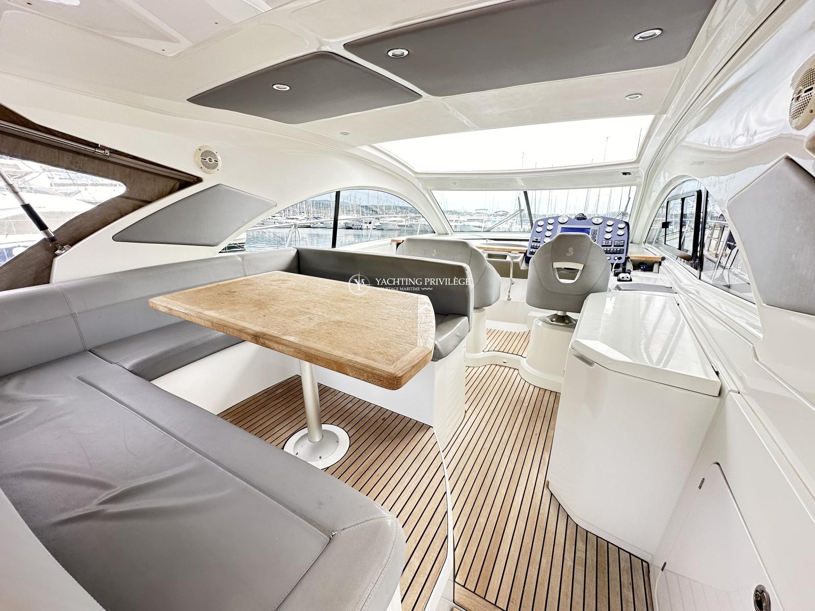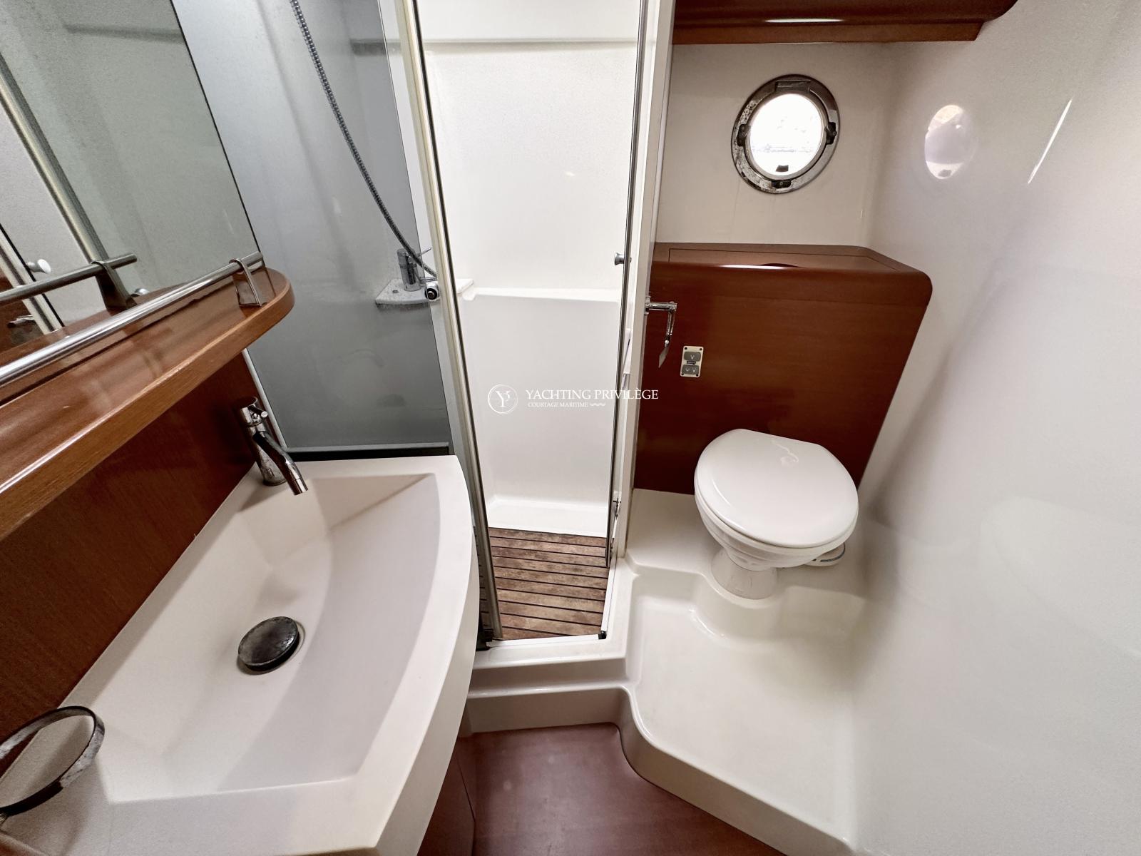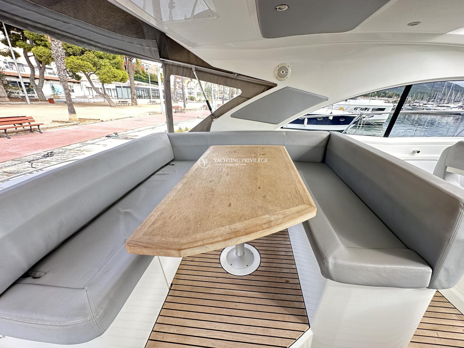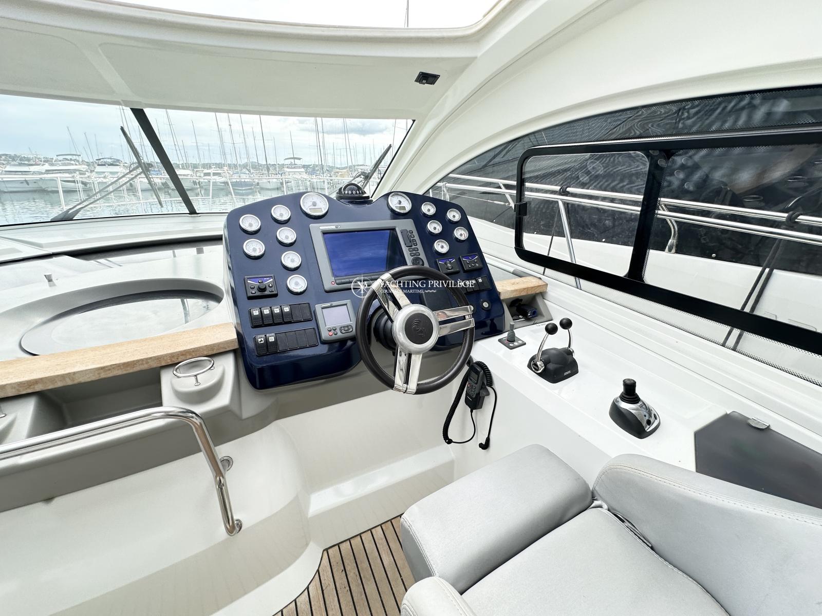 Bateau bien équipé, groupe électrogène, climatisation réversible, hard-top électrique, propulseur d’étrave, garage à annexe, guindeau électrique, plancha, taud de camping, sellerie complète, taud de protection des selleries, VHF, GPS, sondeur, radar, pilote-automatique…
