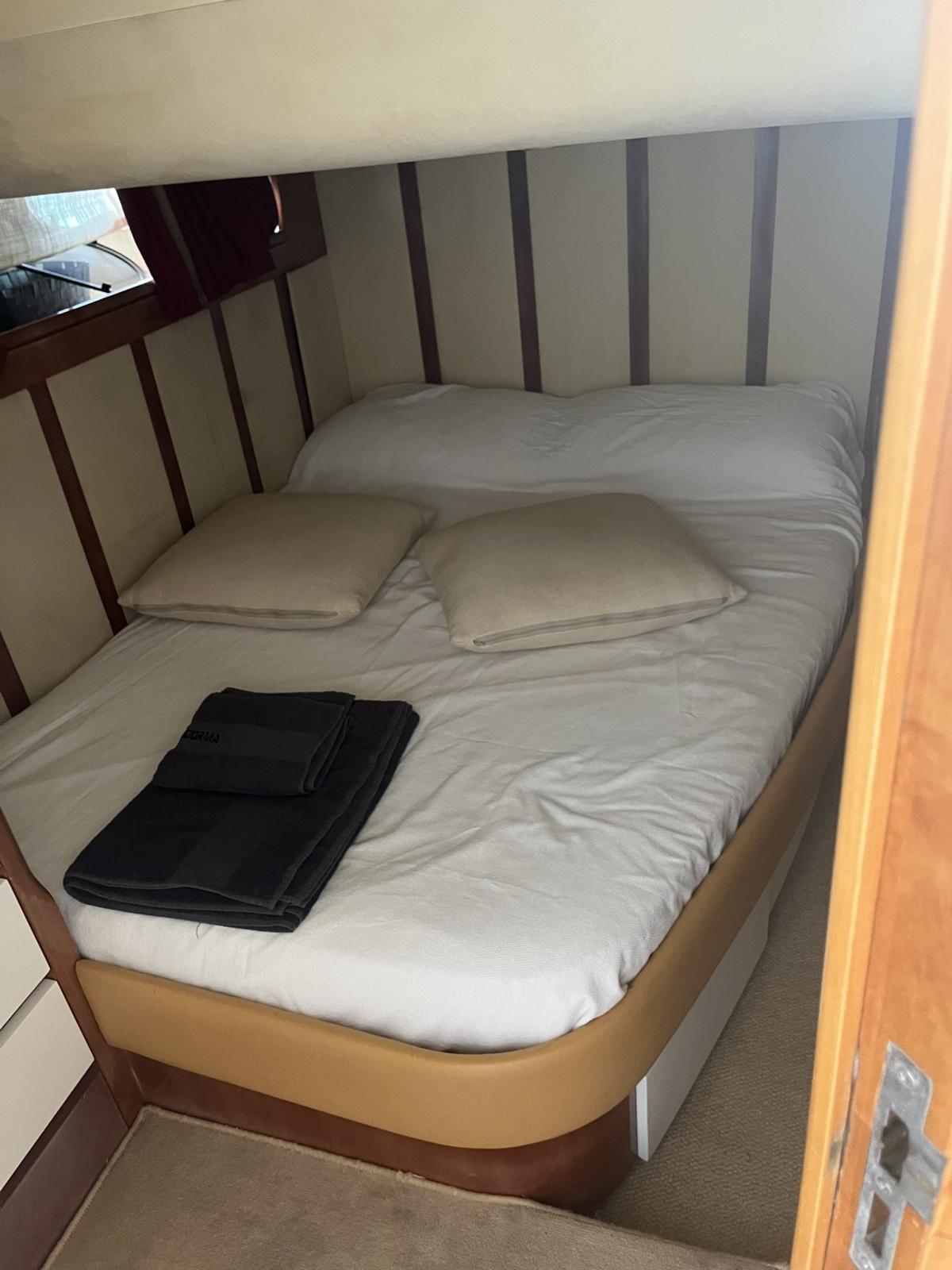Internet dans tout le bateau avec wifi. Système de halage d’annexe renforcé et simplifié, plancher de pont en antidérapant, joints en teck en plate-forme blanche. Douche à l’avant. Installation de l’évier extérieur et de la cuisine avec plan en Corian noir et couvercle en bois. Coussins, proue et poupe en ordre. Hélices équilibrées 2024 . Révision d’Arneson et toutes les tuyauteries et pompes annuelles associées, casque arneson 2024. . A remplacé Arneson Tools 2020, . Moustiquaires amovibles à tous les hublots et aux deux évasions de pont. Grand casier et tiroir sous le lit de la cabine propriétaire avec ouverture sur pistons Pompes doublées pour toutes les toilettes. Des sous-projecteurs supplémentaires. Echelle de bain avec verres également sur les côtés, plage de teck 2021 polissage 2024. Refit et entretien extraordinaire Moteurs, Générateur, Arneson 2024 avec liste détaillée privée sur demande. Nouvel appareil électronique embarqué 2024. Usine Fusion 2024,