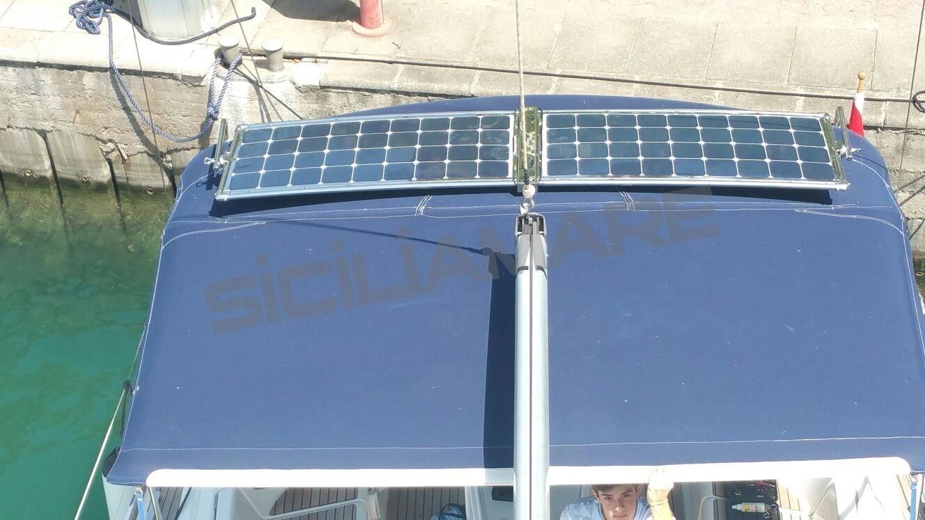 Alarme moteur, Eau sous pression, 4 Batteries, Passavant en teck (da rivedere), Douche de cockpit, Phares fixes arrière, Éclairage de courtoisie, Panneau solaire (2017), Plateforme arrière, Pompe de cale automatique, Pompe de cale manuelle, Cockpit en teck, Prise de quai, Guindeau électrique, Gréement monotoron, Echelle de bain, table de cockpit, 4 Winch, Windex.