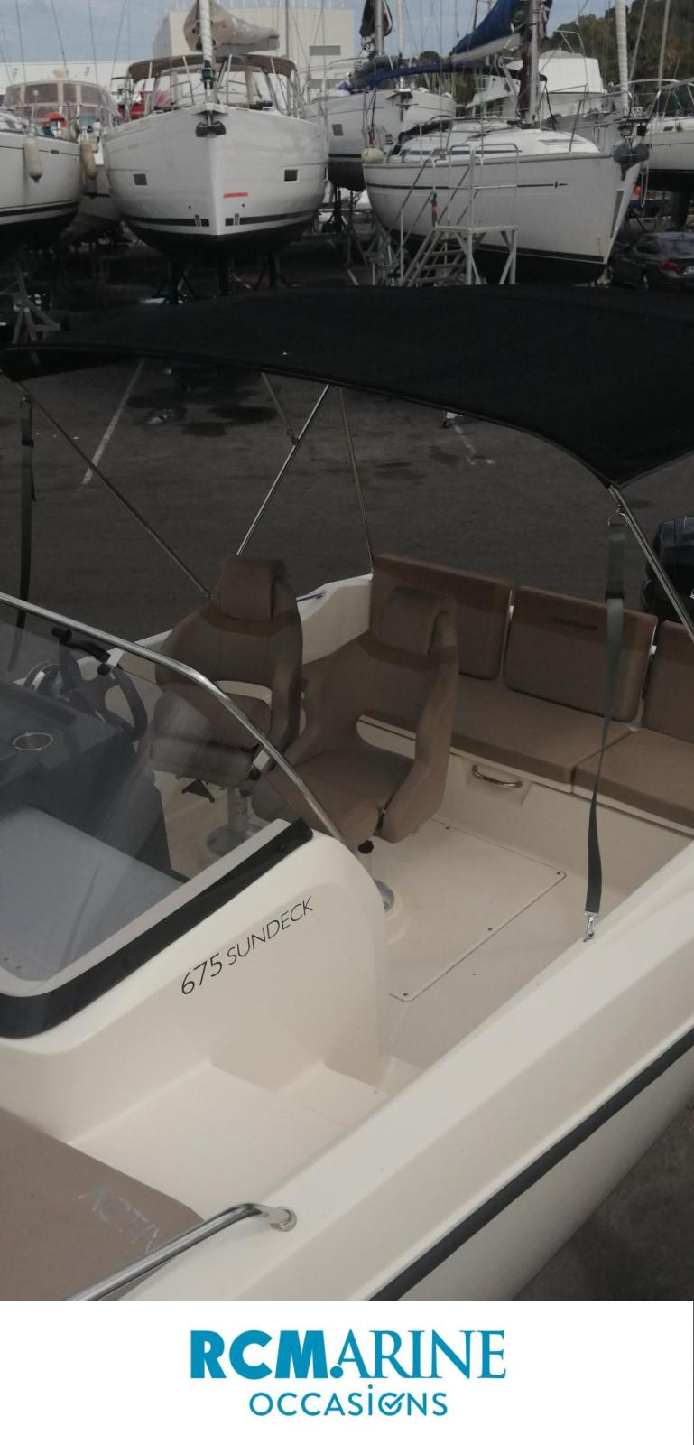 Compact mais particulièrement bien optimisé, le Quicksilver 675 Sundeck séduit par son équilibre entre sportivité, confort et praticité. Il constitue un choix idéal pour les plaisanciers souhaitant accéder à un bateau élégant, facile à prendre en main et parfaitement adapté aux navigations côtières.
