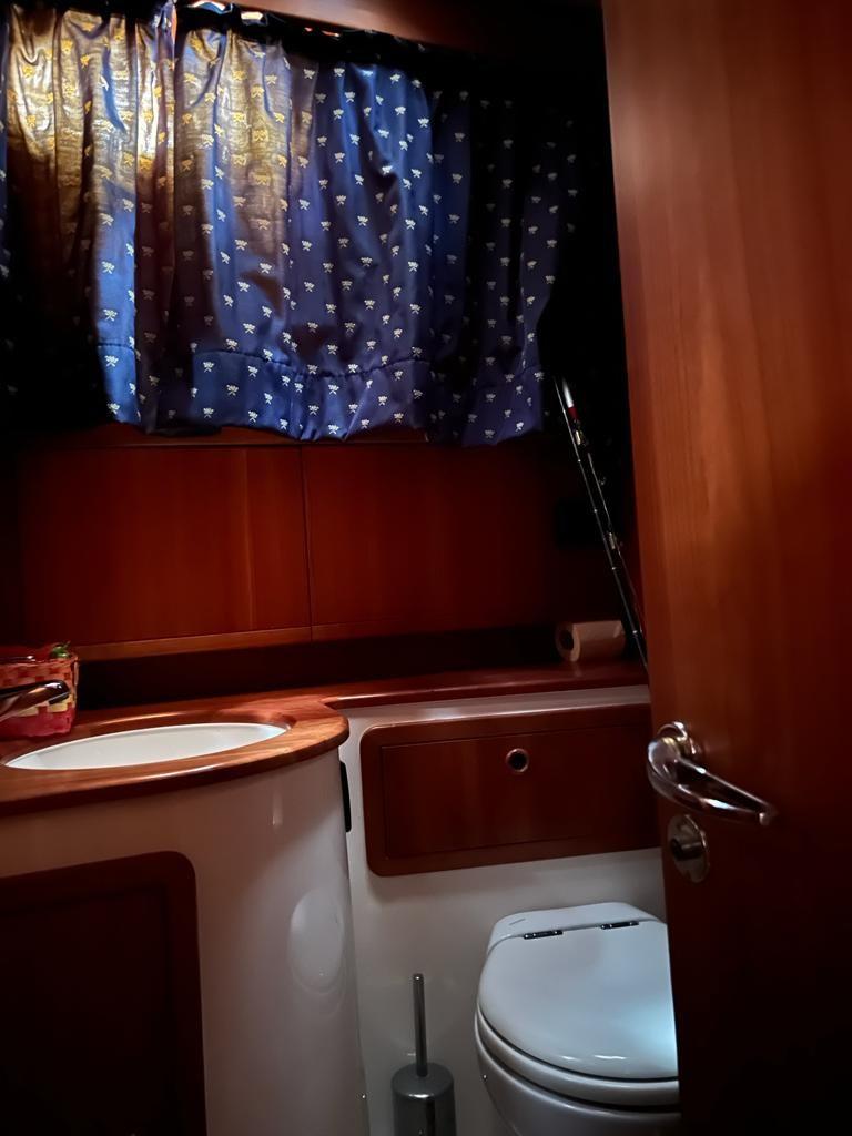 Eau sous pression, Douche de cockpit, Double barre à roue, Flaps hydrauliques, Passerelle, Plateforme arrière, Porte latérale, Prise de quai, Guindeau électrique, Echelle de bain, Annexe (motore fuori bordo 2,6 kw).