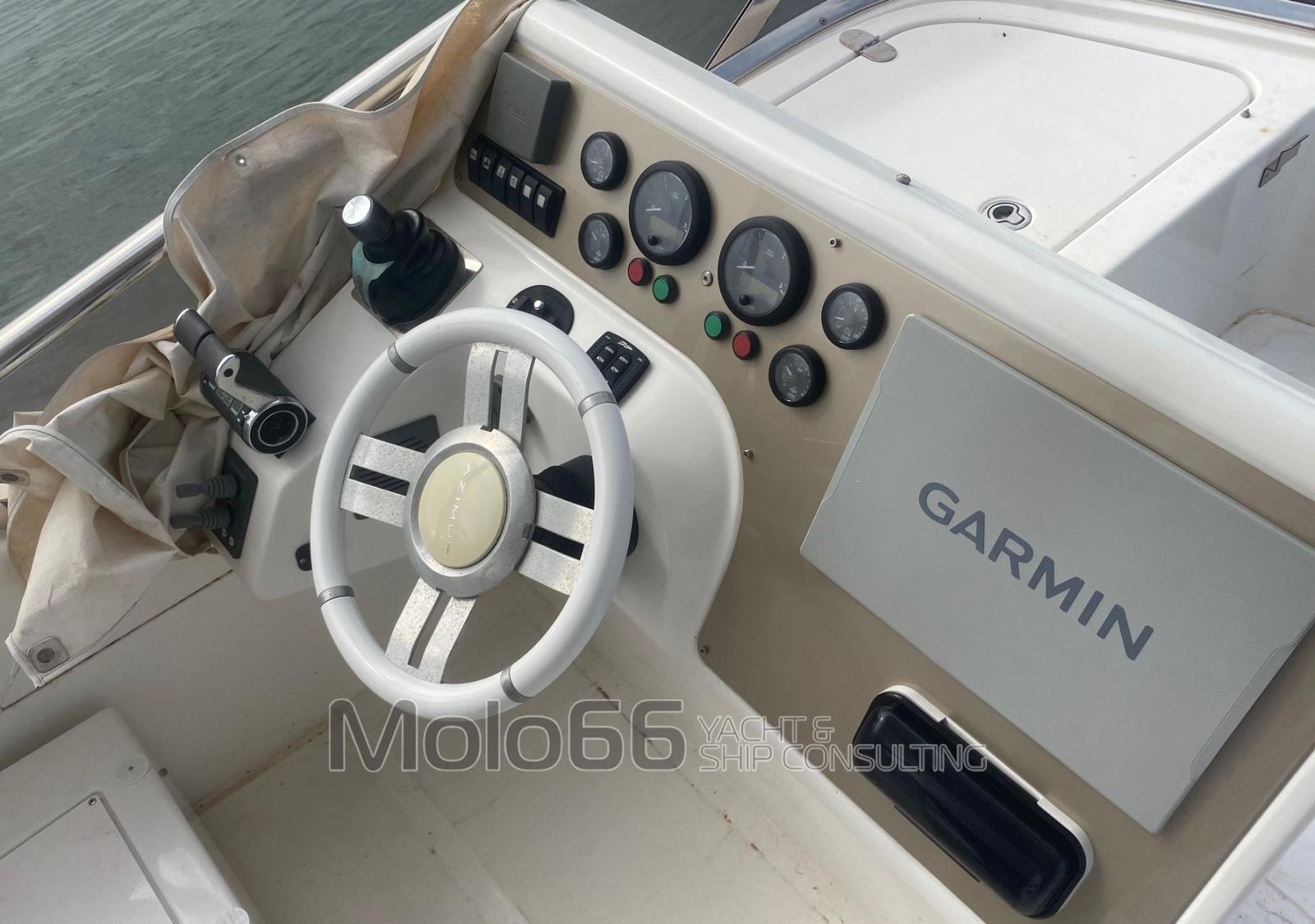 Indicateur d'angle de barre, Commande électrique, 2 Moniteur (Garmin), Joystick, Plotter GPS.