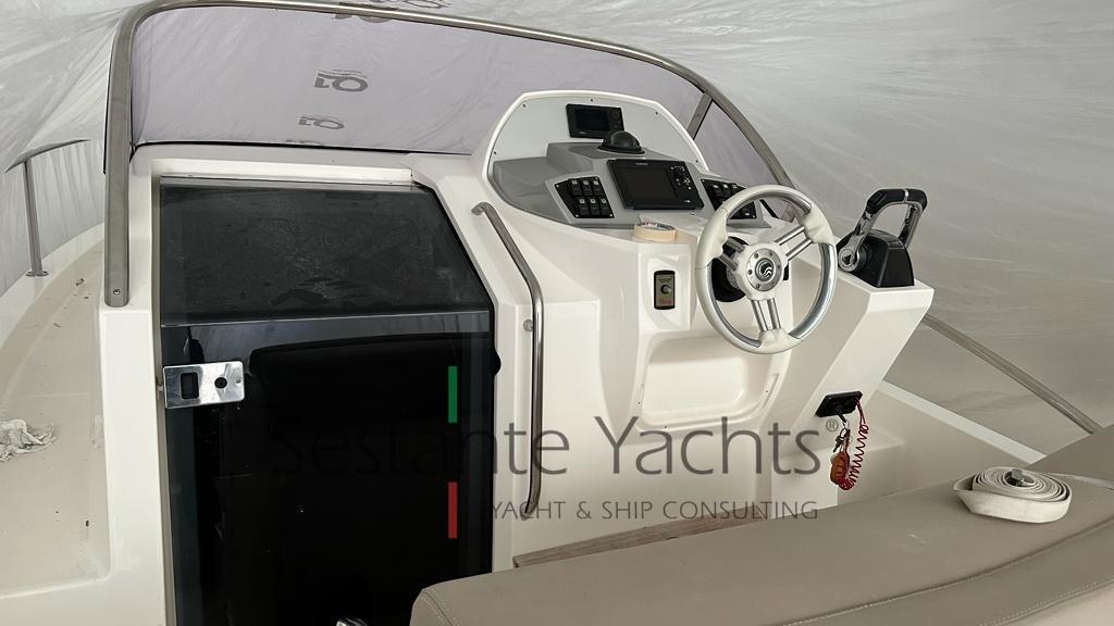 Alarme moteur, Eau sous pression, Douche de cockpit, Pompe de cale automatique, Porte latérale, Prise de quai, Guindeau électrique, Echelle de bain, table de cockpit, Corne.