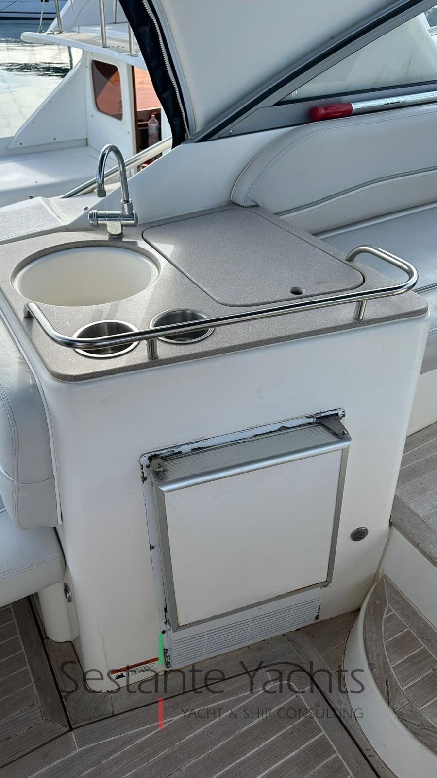 Alarme moteur, Eau sous pression, Batteries (Nuove 2023), Douche de cockpit, Phare de poursuite (a prua), Flaps hydrauliques, Pompe de cale automatique, Cockpit en teck, Prise de quai, Rollbar, Guindeau électrique, Echelle de bain, table de cockpit, Table pliante de salon.