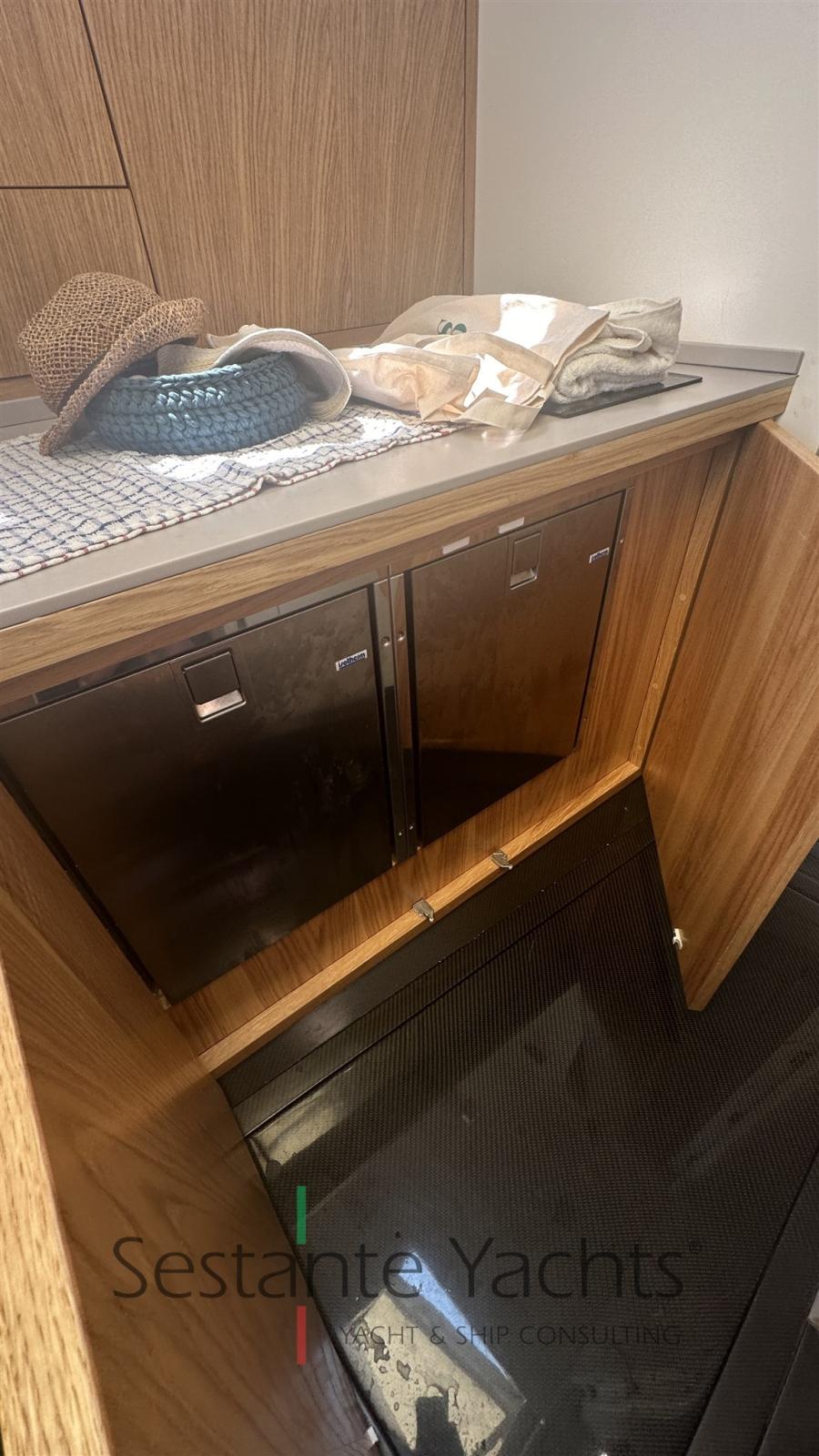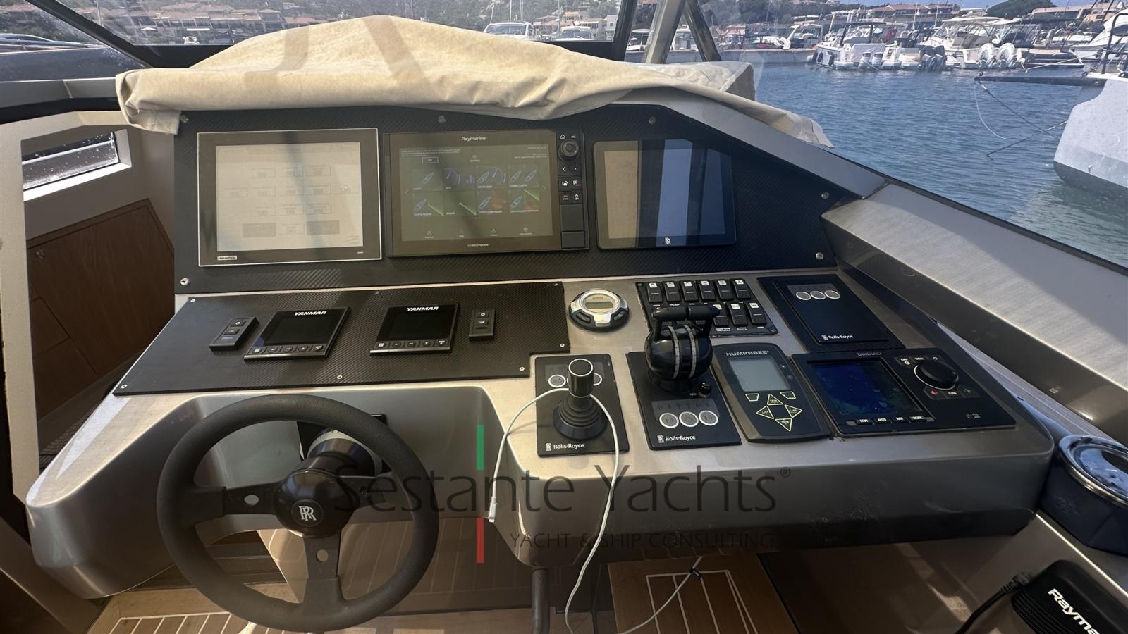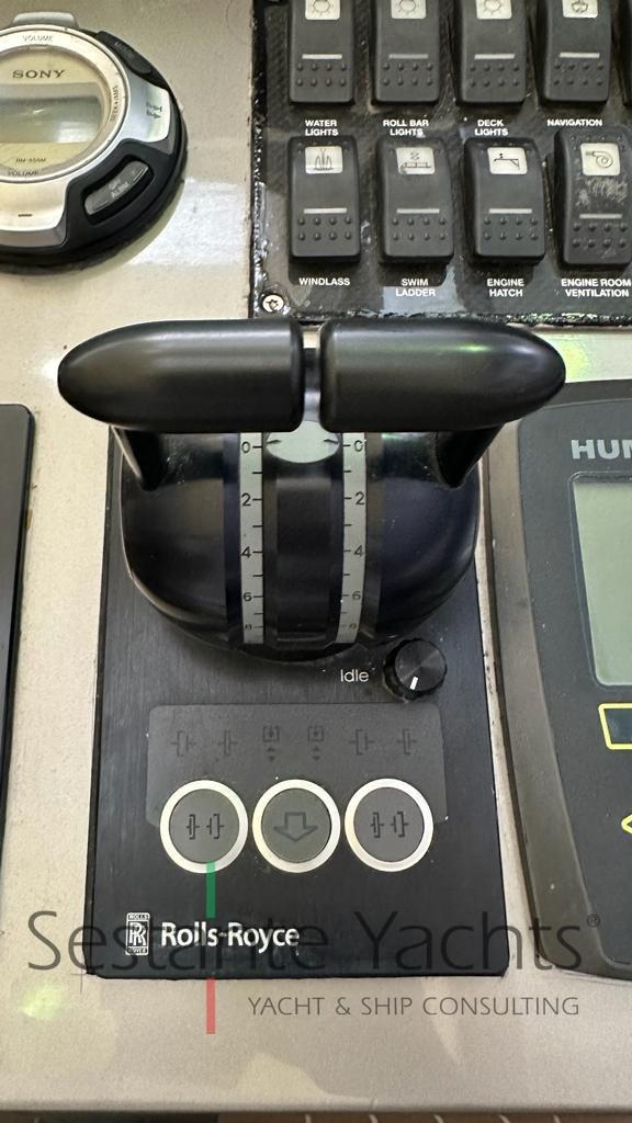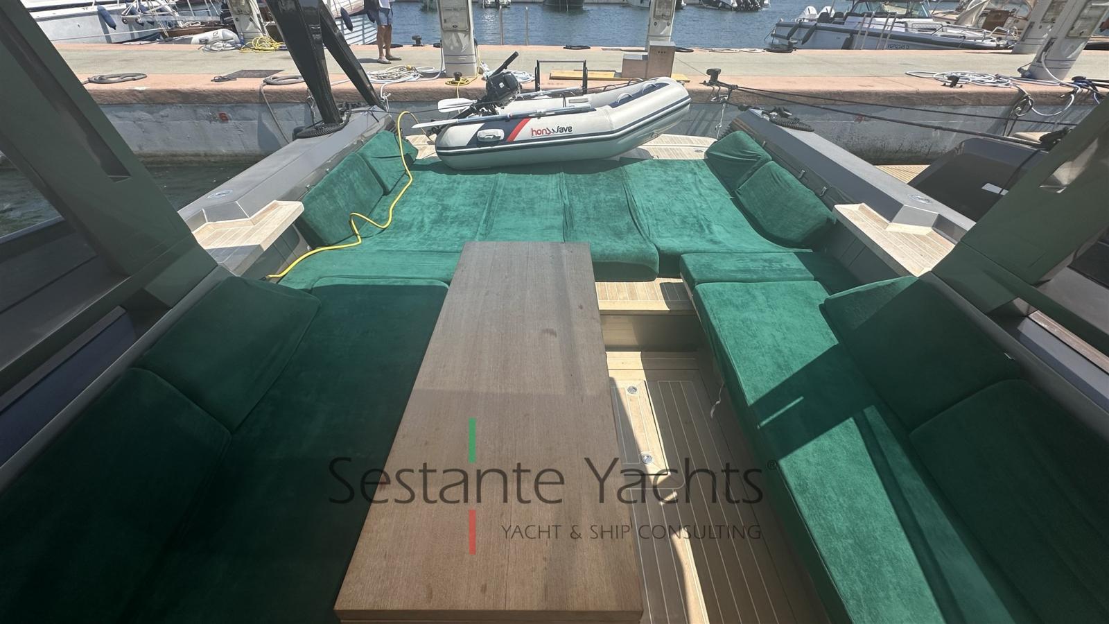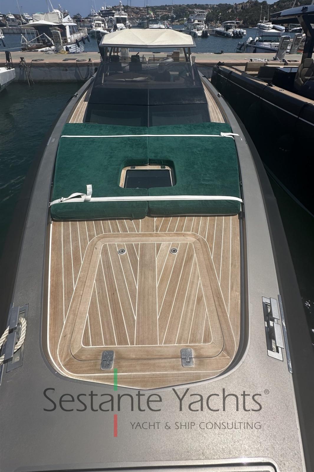 Alarme moteur, Alarme de pompe de cale, Ouverture du compartiment moteur électrique, Auto Dynamic Trim Interceptor, Eau sous pression, Passavant en teck, Couleur spéciale (Gray), Douche de cockpit, Flaps hydrauliques, Bossoirs (In carbonio ammovibile), Extincteur(s) fixe(s), Éclairage de courtoisie, Plateforme arrière, Pompe de cale automatique, Pompe de cale manuelle, Cockpit en teck, Prise de quai, Guindeau électrique, Echelle de bain, table de cockpit, Annexe, Corne, T-Top, Pont en teck.