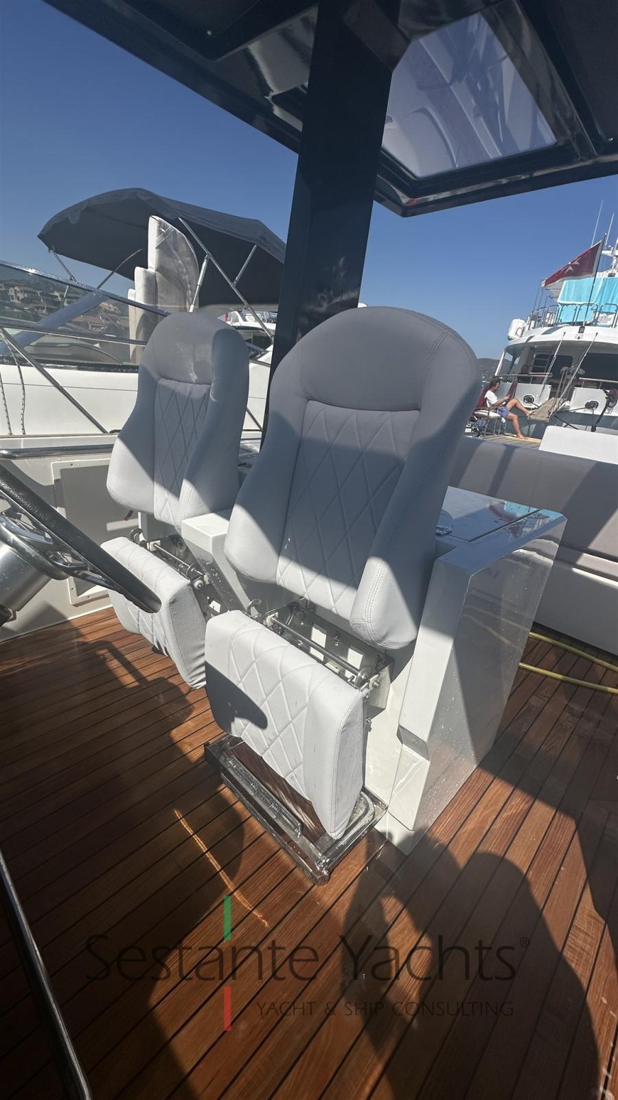 Indicateur d'angle de barre, Commande électrique (Volvo EVC + 2x 2,5" engines displays), GPS (2024), Joystick, Pilote automatique ((Option) Raymarine Evolution), 2 Siège copilote.
