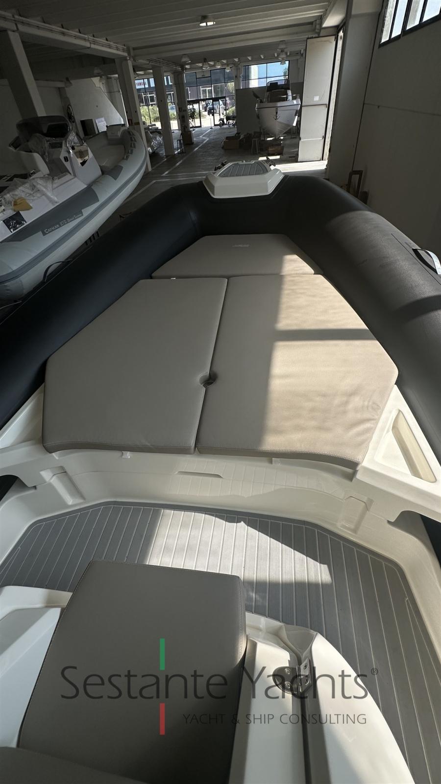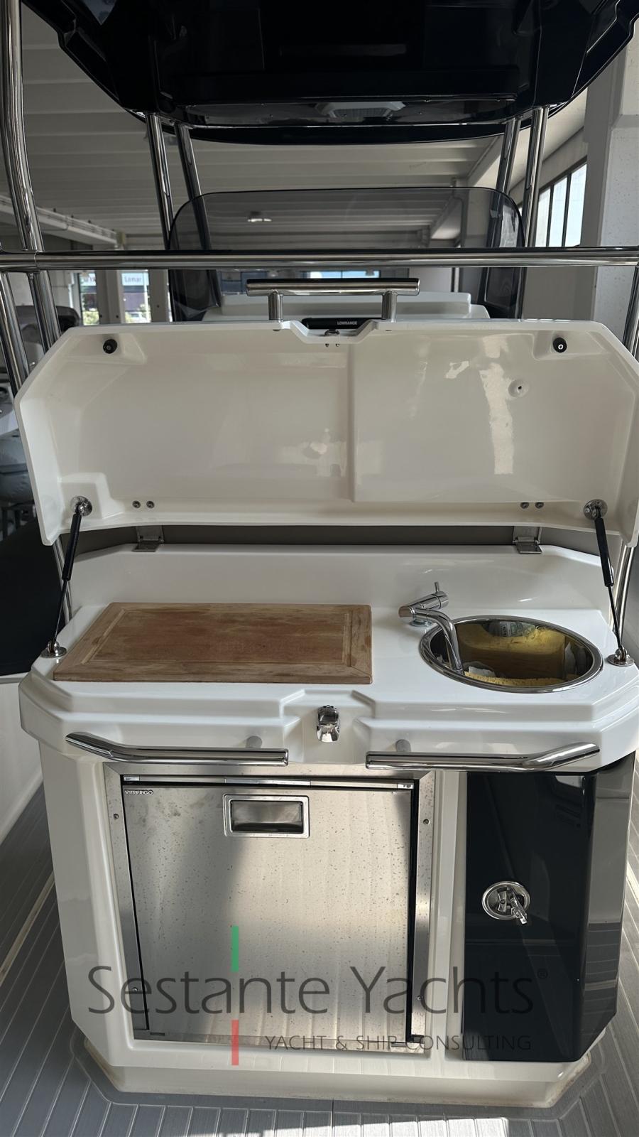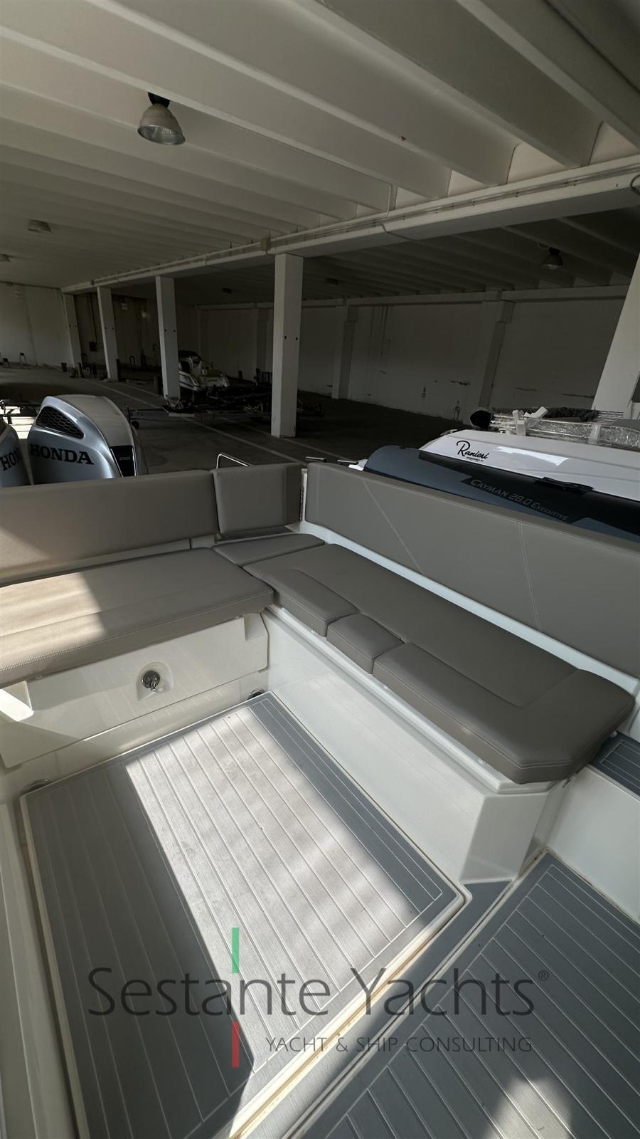 Eau sous pression, Douche de cockpit, Pompe de cale automatique, Cockpit en teck (Sintetico), Guindeau électrique, Echelle de bain, Table (Elettrico).