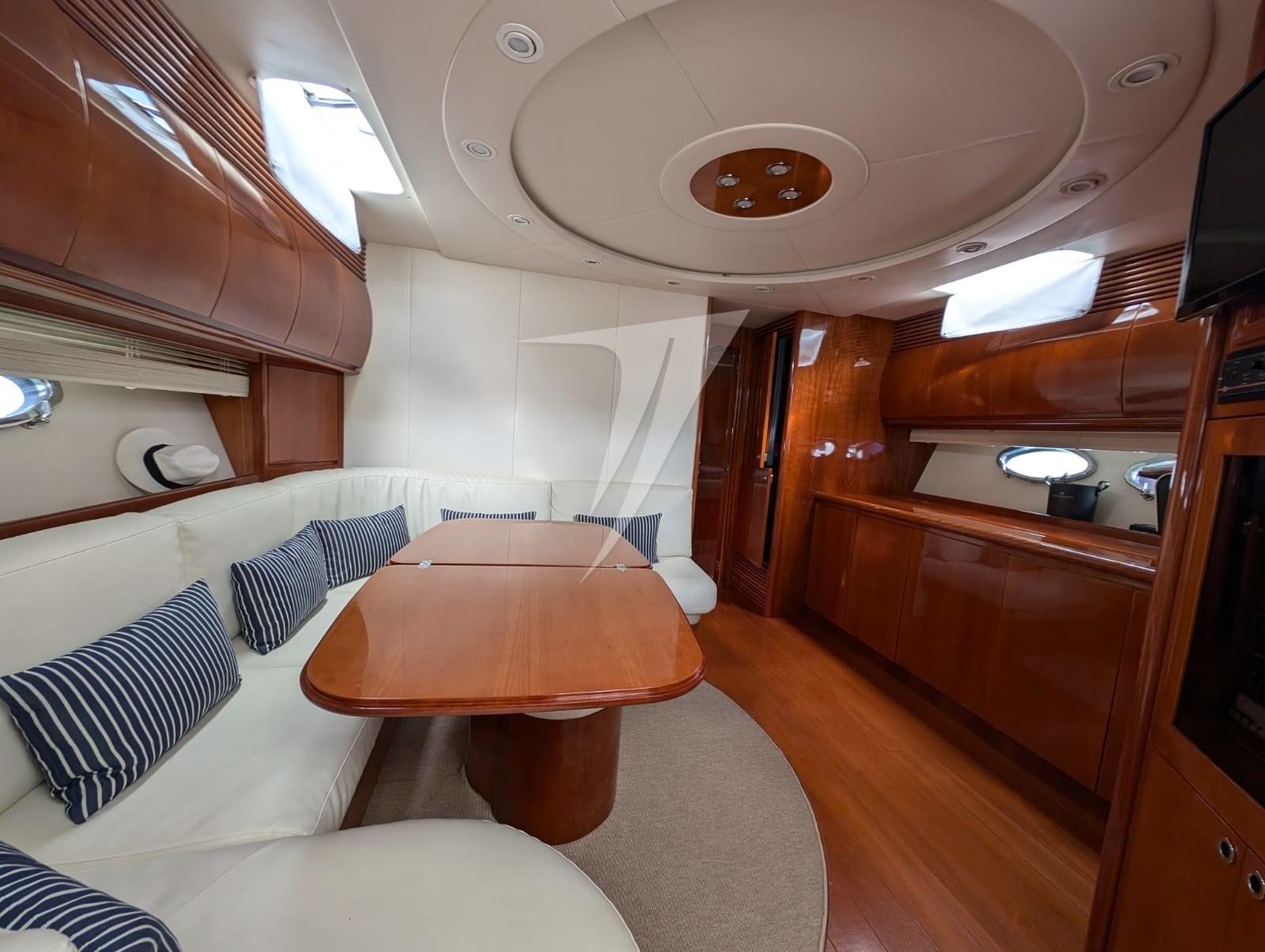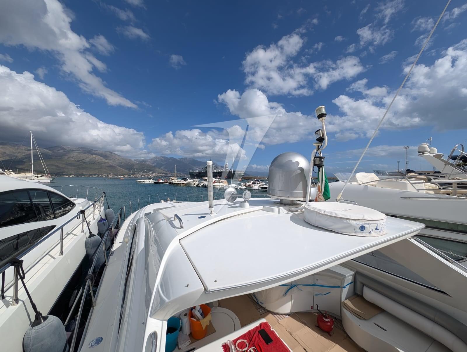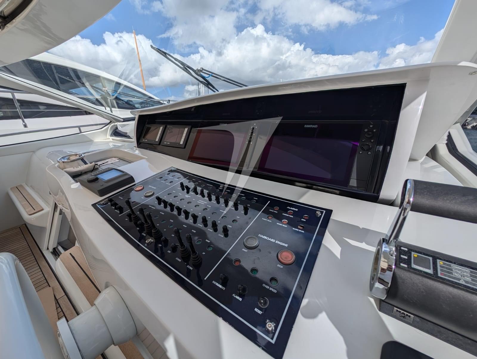 Alarme moteur, Eau sous pression, Douche de cockpit, Flaps hydrauliques, Hard top (apribile), Passerelle (idraulica), Cockpit en teck, Prise de quai, Echelle de bain, table de cockpit, Winch électrique avant.