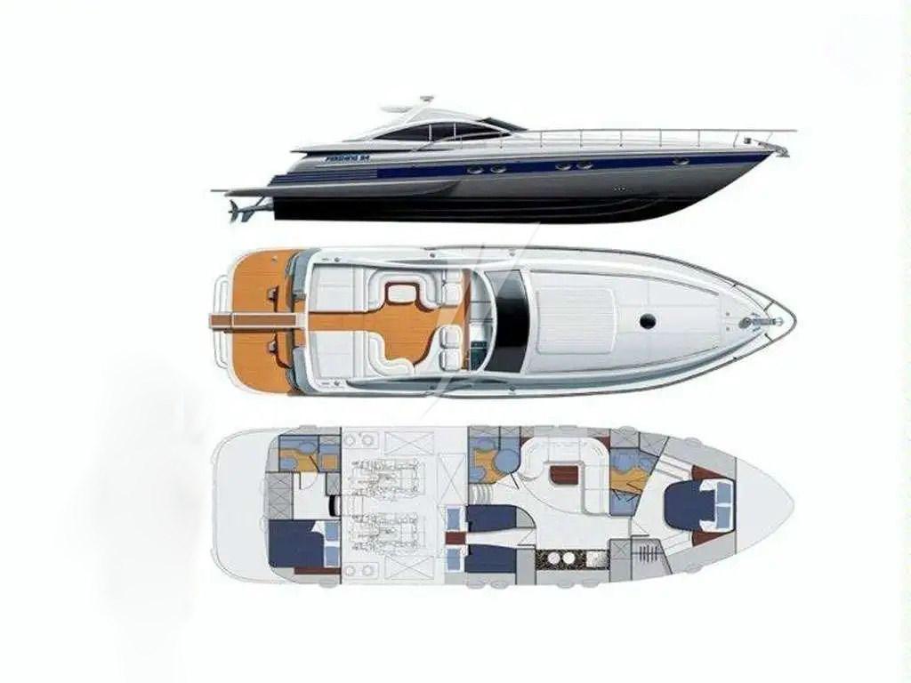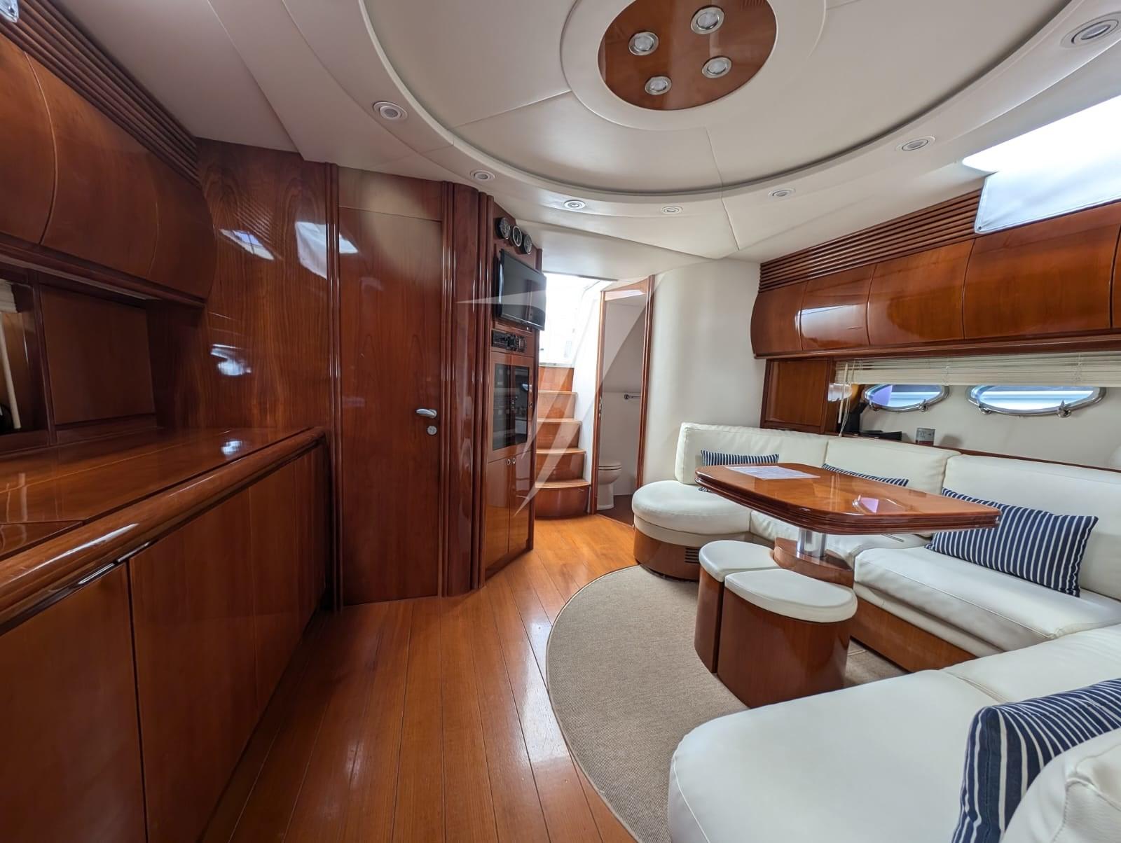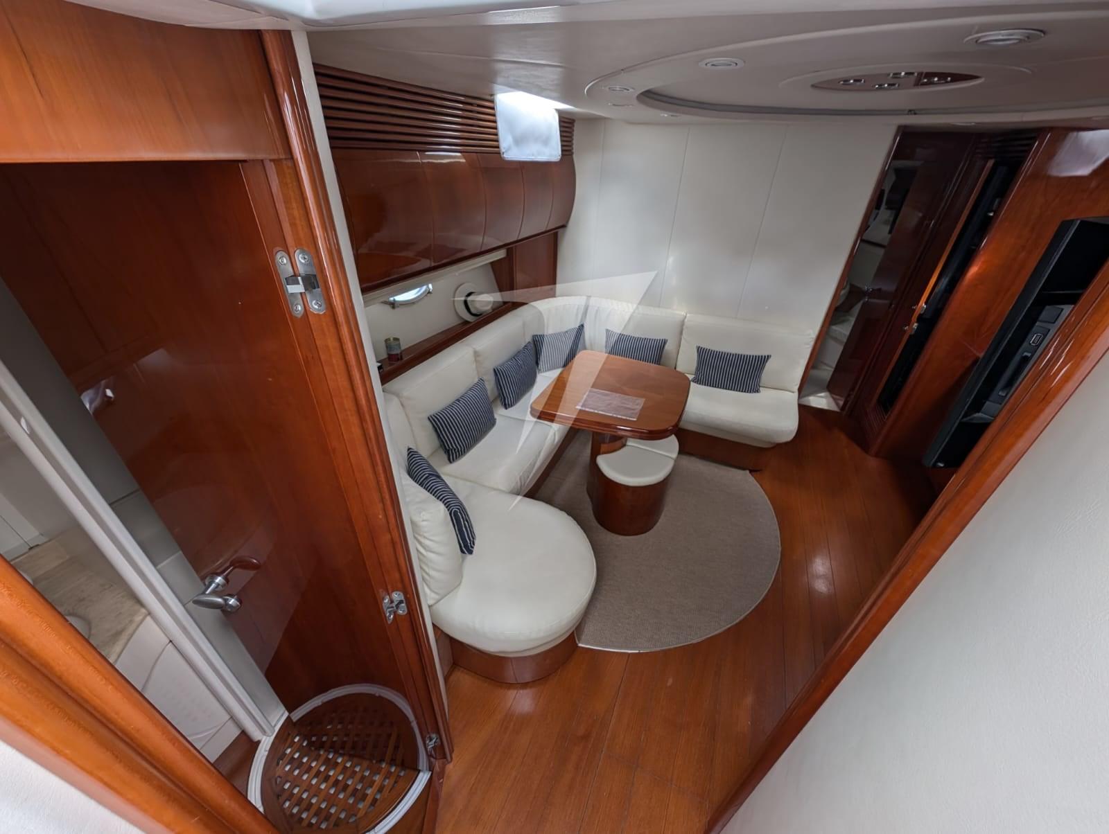 Alarme moteur, Eau sous pression, Douche de cockpit, Flaps hydrauliques, Hard top (apribile), Passerelle (idraulica), Cockpit en teck, Prise de quai, Echelle de bain, table de cockpit, Winch électrique avant.
