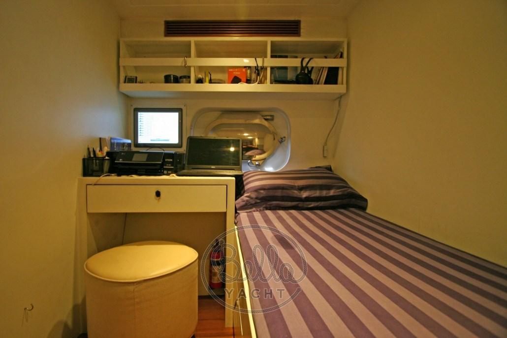 Propulsé par deux moteurs Cummins Inc., Marina Vela glisse sans effort sur les eaux, atteignant une vitesse maximale de 12,5 nœuds. Avec une capacité de carburant de 4 700 litres, le yacht offre des voyages prolongés sans avoir besoin de ravitaillements fréquents.
