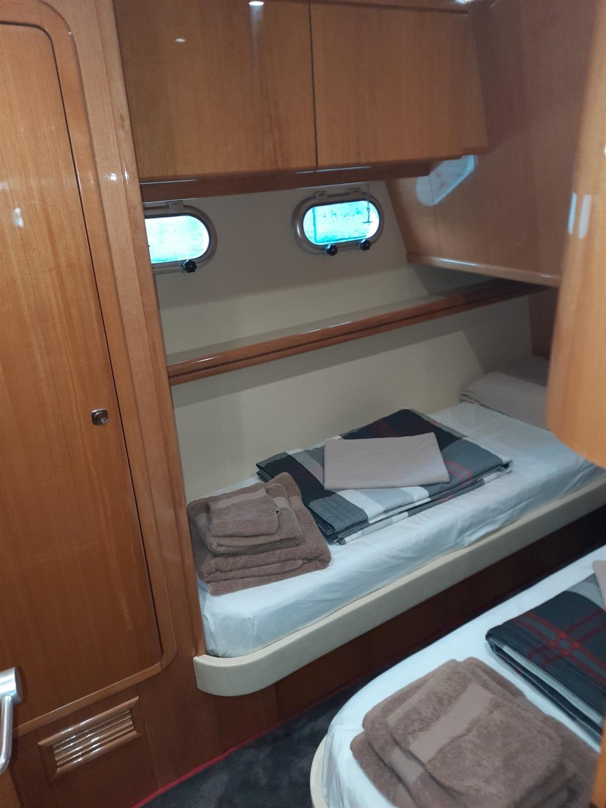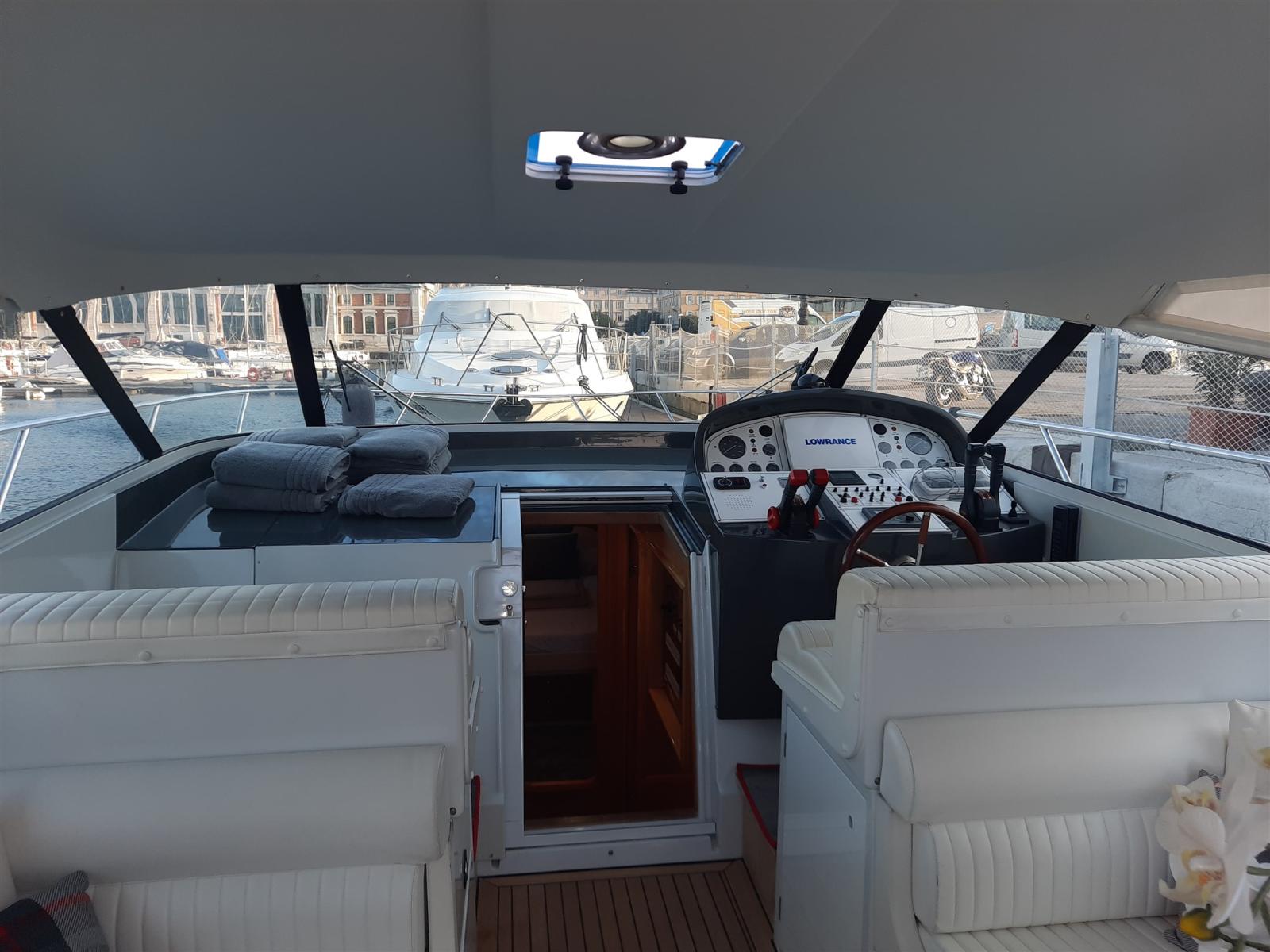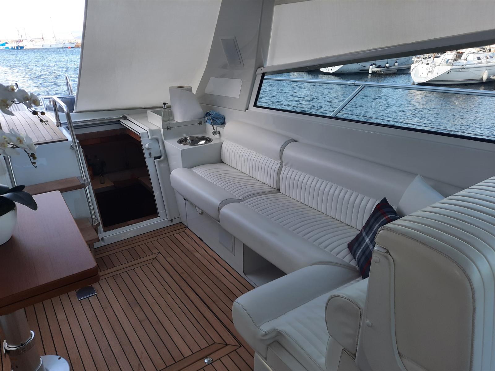 Alarme moteur, Alarme de pompe de cale, Eau sous pression, Douche de cockpit, Phare de poursuite, Flaps hydrauliques, Hard top, Extincteur(s) fixe(s), Indicateurs de flaps, Lavage de chaine, Éclairage de courtoisie, Spots sous-marins, Passerelle (IDRAULICA), Plateforme arrière, Pompe de cale automatique, Cockpit en teck, Prise de quai, Connexion eau sous pression à quai, Onduleur, Guindeau électrique, Echelle de coupée, Echelle de bain, Système de filtration des eaux usées, table de cockpit, Corne, T-Top.