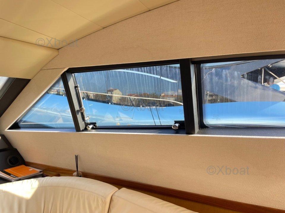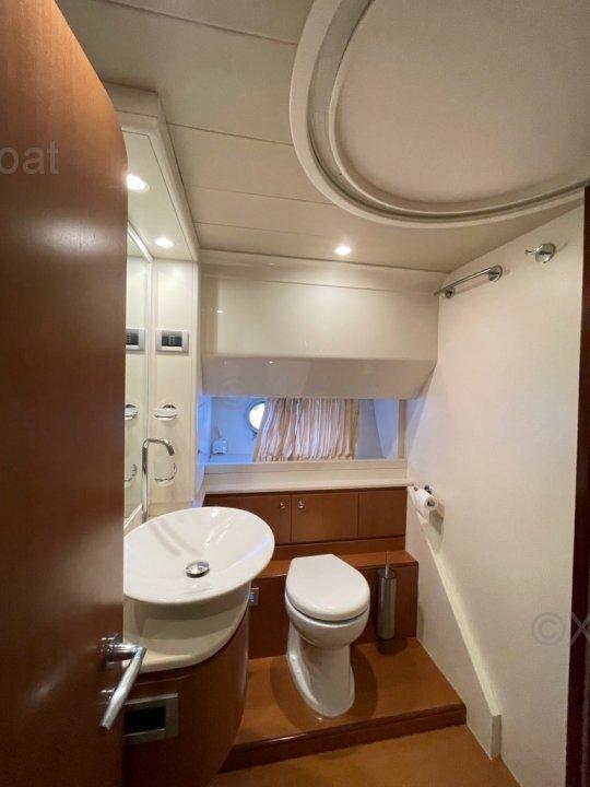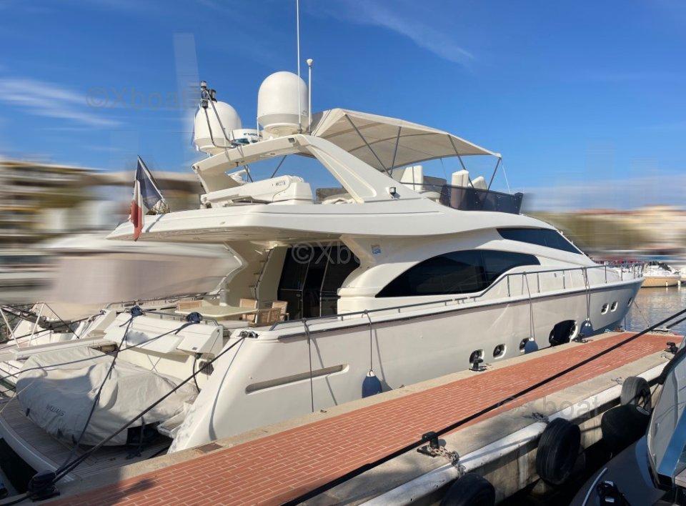 XBOAT ref :5956.informations générales : ce Ferretti 681 offre 4 cabines double, 3 salles de bains, 2 cabines d'équipage avec salle de bain. Le carré est équipé d'un canapé en demi lune, un autre canapé 2 places, une table basse et un meuble avec TV escamotable, système Audio stéréo Bose. Sol du salon et de la salle à manger en teck. Salle à manger avec table, canapé en L et chaises. 2 escaliers permettent d'accéder au flybridge qui est large est bien aménagé. Le bateau est équipé d'une cuisine équipée.