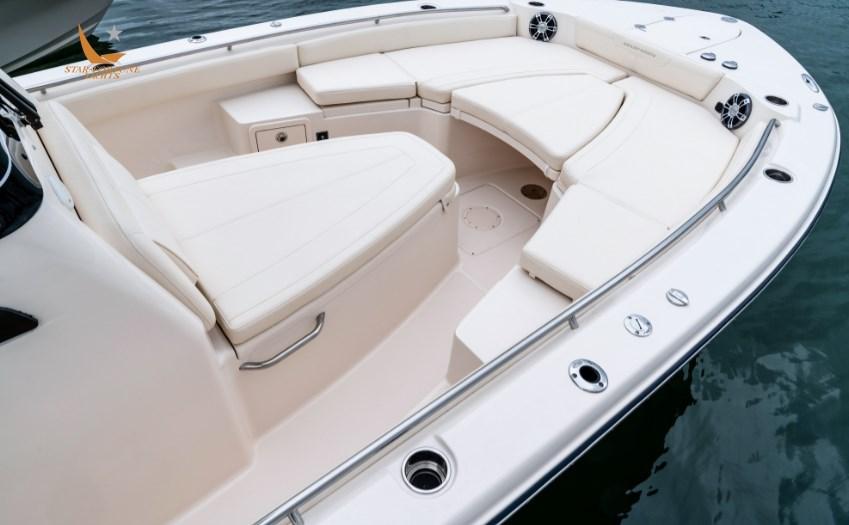 Bateau côtier/hauturier par excellence, construit sur la légendaire coque SeaV² ® de Grady-White, le 281 Coastal Explorer change la donne ! Débordant d’ingéniosité, à commencer par une nouvelle plate-forme pliante électrique standard sur le côté bâbord avec échelle rabattable et la banquette arrière nouvellement conçue avec trois configurations différentes, ce bateau haut de gamme Grady-White offre trois fois plus de sensations fortes. Qu’il s’agisse de pêcher dans des eaux peu profondes et des canyons offshore plus profonds, ou de conduire dans le luxe et avec style vers et depuis le banc de sable, ce bateau incroyablement polyvalent fera le bonheur de toute la famille !