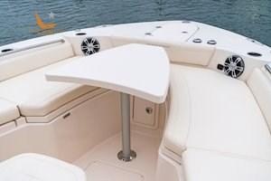 Un seul moteur est disponible pour ce bateau, à savoir deux Yamaha V6 3.8cc 300ch. Il est possible de faire installer le bateau avec la timonerie standard ou hydraulique ou
