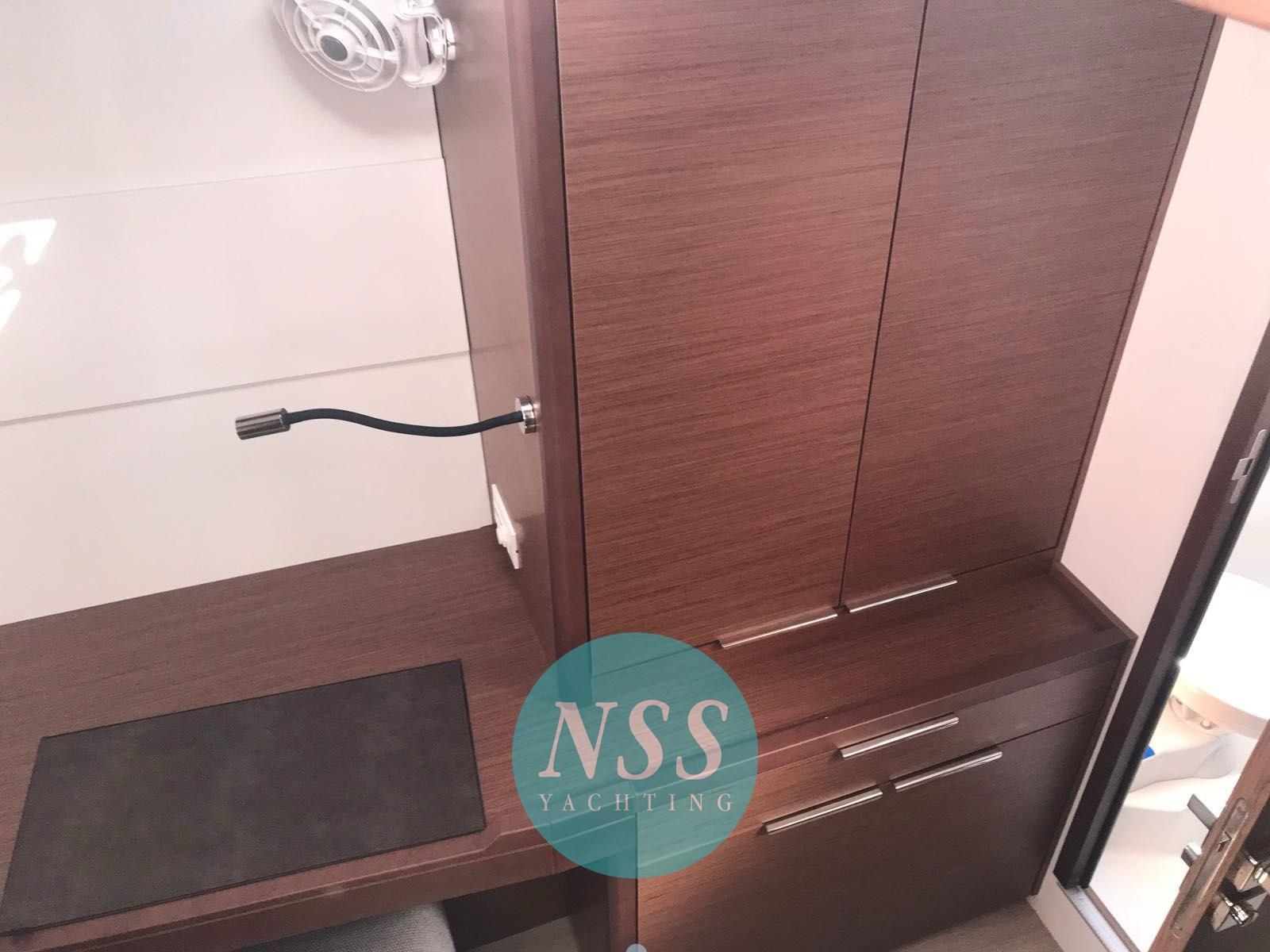 Eau sous pression, Douche de cockpit, Éclairage de courtoisie, Moteur d'annexe (honda 8hp), Passerelle, Pompe de cale automatique, Pompe de cale manuelle, Porte latérale, Cockpit en teck, Prise de quai, Connexion eau sous pression à quai, Guindeau électrique, Echelle de bain, Chaise support HB, table de cockpit, 3 Winch, Windex.