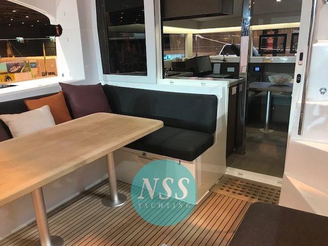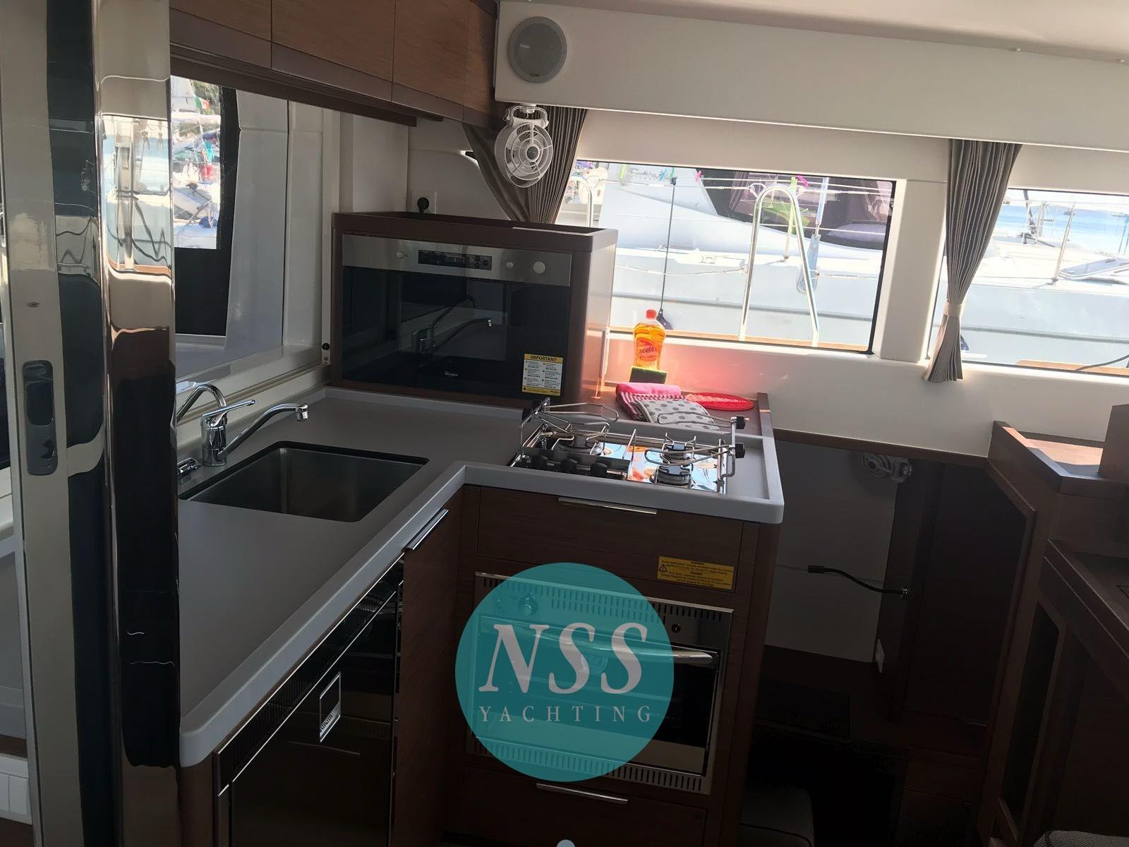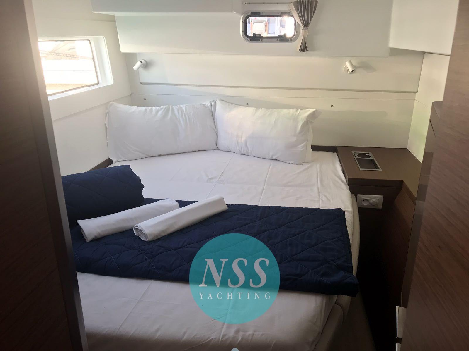 Lagoon 40, VERSION PROPRIÉTAIRE (trois cabines, deux salles de bain, plus des cabines extérieures pour l’équipage et une cabine à manger décapotable) ; prêt à bouée et en option : version gamme Comfort and Elegance, dépeilleur, treuil électrique, coussins complets, commande de guindeau dans la timonerie, teck dans le cockpit, pompe à eau de mer, grande table de cockpit avec couvercle, moteurs surdimensionnés de 45 ch, réservoir d’eau supplémentaire, onduleur, micro-ondes, réfrigérateur supplémentaire, ventilateurs, antenne TV, AIS, radar, passerelle carbone, sondeur avant B&G, télécommande pilote automatique, nouveau filet d’étrave, chaîne encore nouvelle...