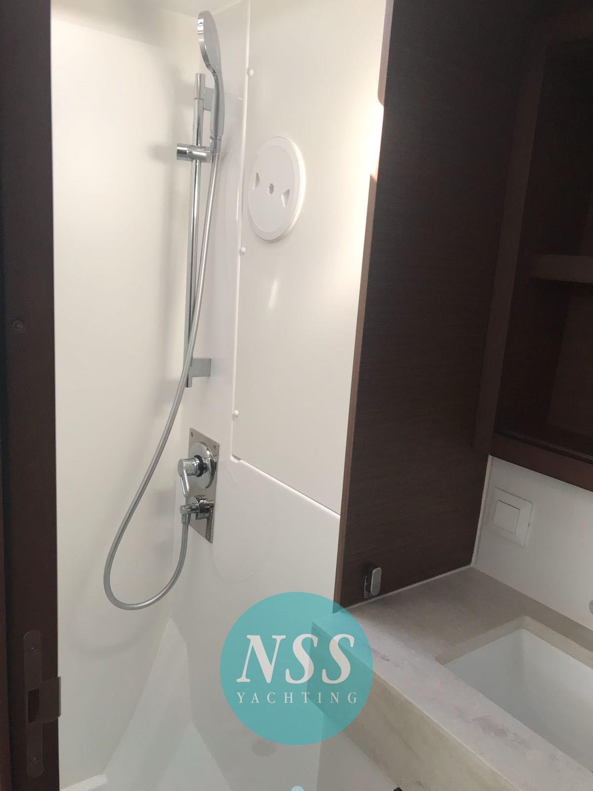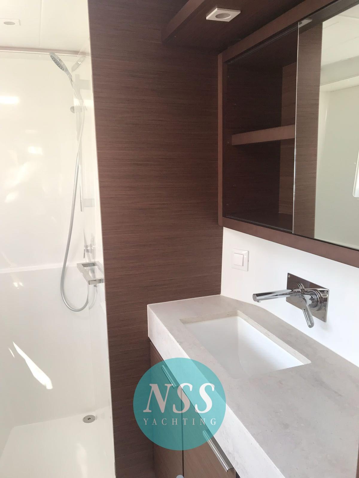 Ballon d'eau chaude, Dessalinisateur (240lt/h), Cuve à eaux noires, Convertisseur (2000VA), Prises interieures 12v, Prises interieures 220v, Réservoir d'eau noire, 2 Toilettes électriques.