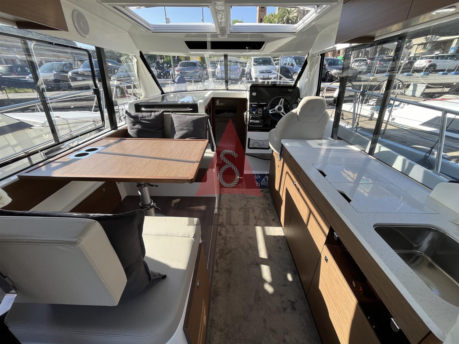 Alarme moteur, Eau sous pression, Trim hydraulique, Couleur spéciale, Douche de cockpit, Flaps électriques, Hard top, Extincteur(s) fixe(s), Indicateurs de flaps, Éclairage de courtoisie, Plateforme arrière, Pompe de cale automatique, Pompe de cale manuelle, Porte latérale, Porte latérale, Cockpit en teck, Prise de quai, Connexion eau sous pression à quai, Guindeau électrique, Echelle de bain, table de cockpit, Corne, Pont en teck.