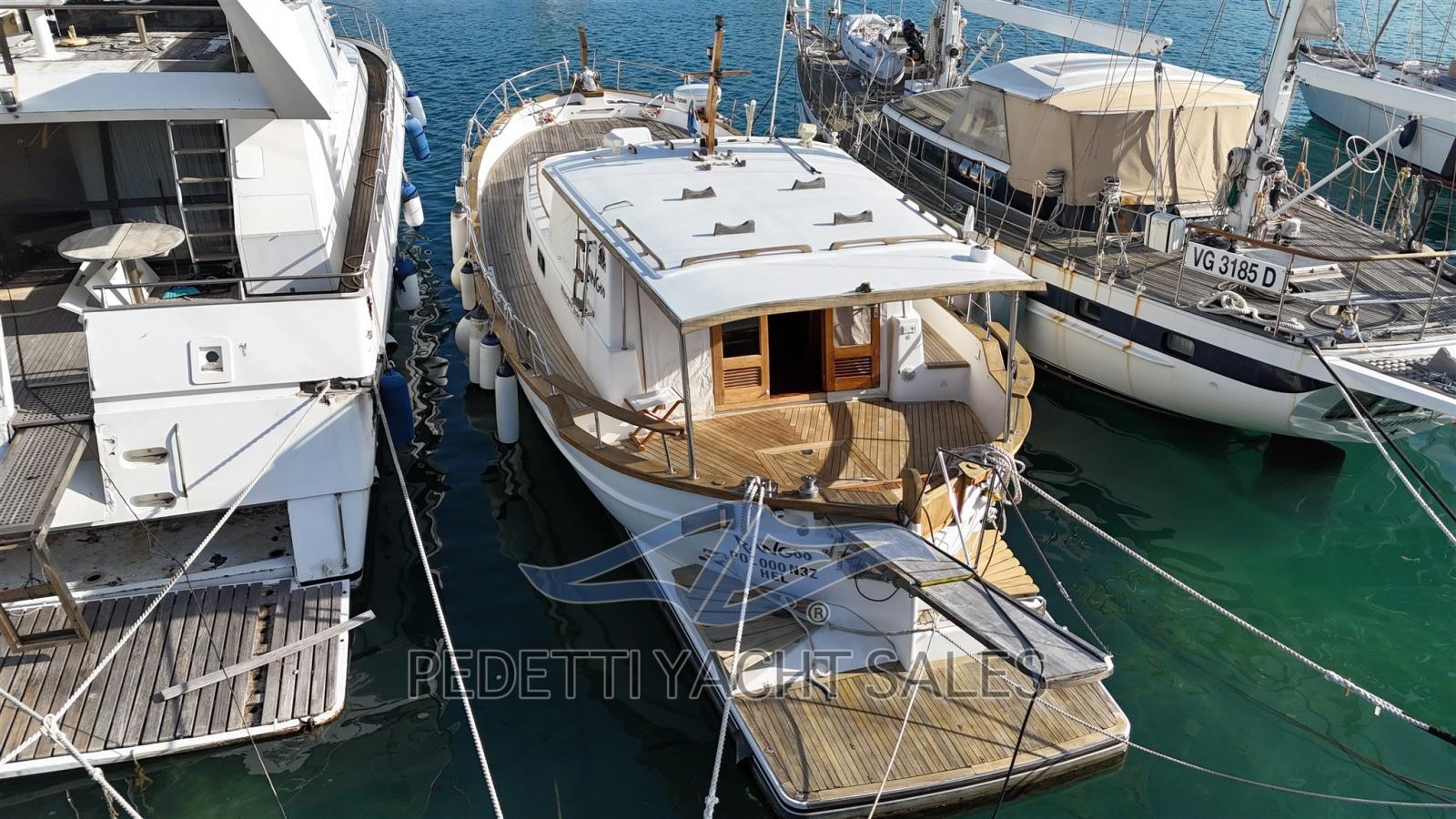 Menorquin 150 de 1998 avec des moteurs Volvo Penta de 320 ch, des échappements réinstallés, échangeurs, de nouvelles turbines installées en 2023 et tous les systèmes de filtration neufs. Les moteurs ne sont que de 800 AC. heures moteur et le générateur AC 44 heures moteur. Le cockpit en teck ainsi que toute la passerelle en teck, la partie caoutchouc du pont n’est pas très usée. Tous les coussins intérieurs et extérieurs ont été refaits en 2023. Le bateau est équipé d’un générateur de 10 kW et d’une climatisation avec deux moteurs pour une diffusion correcte.