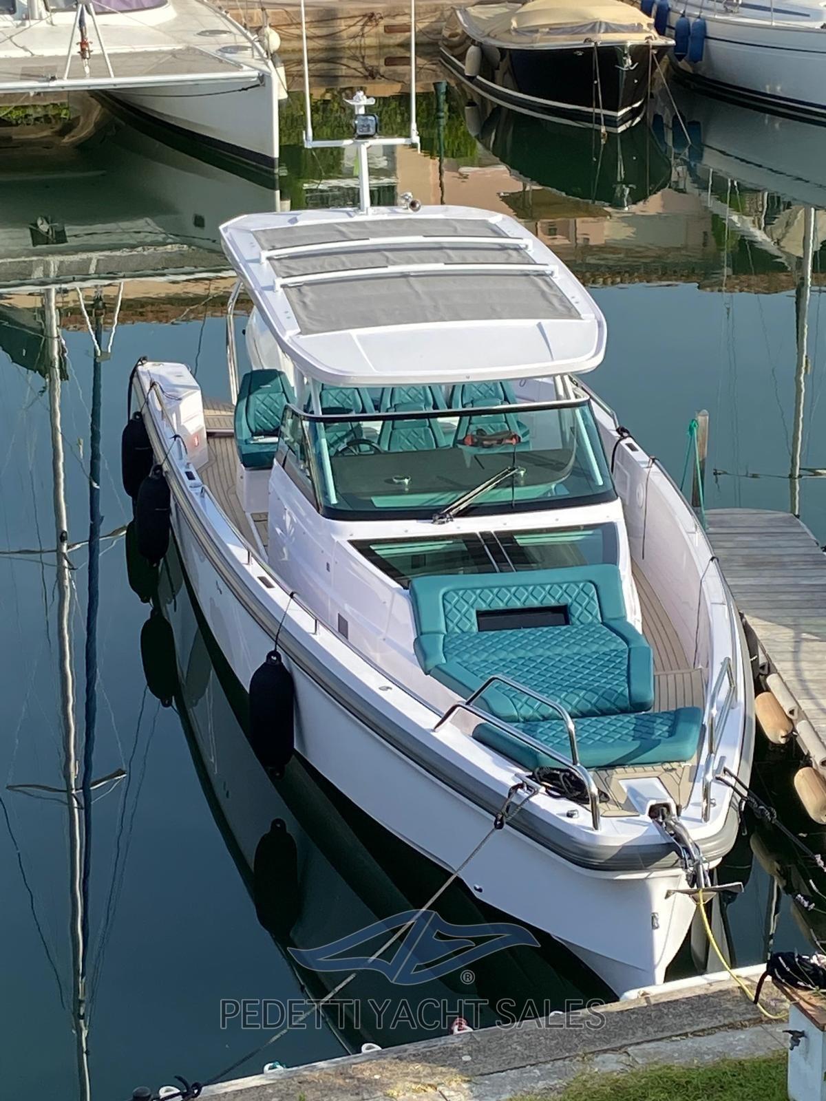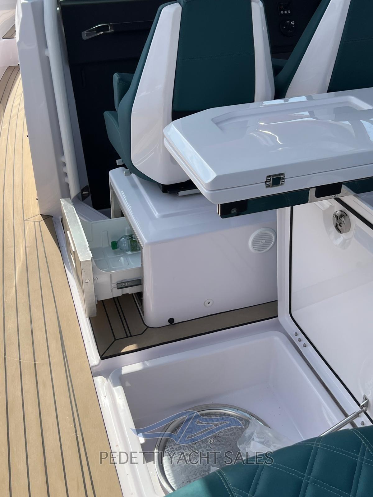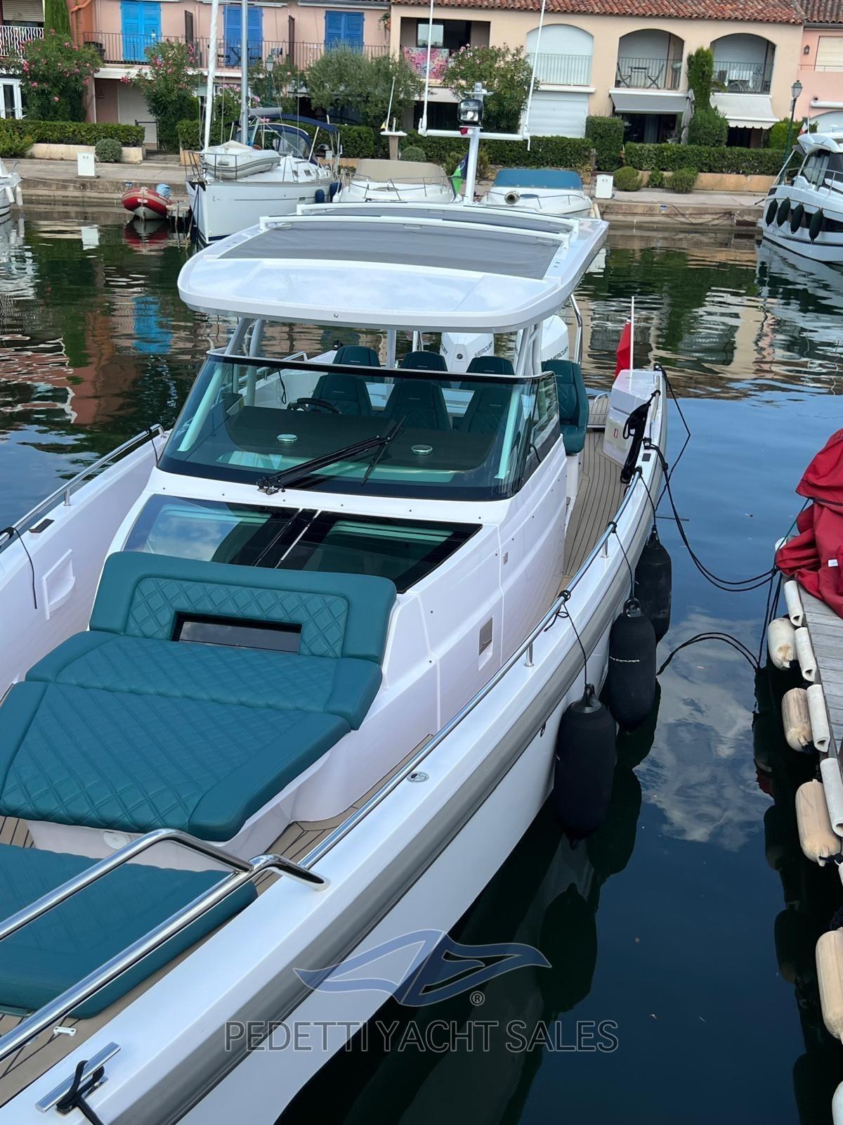 Alarme moteur, Alarme de pompe de cale, Ancre (Delta Inox), Eau sous pression, Trim hydraulique (Active trim Mercury), 4 Batteries, Passavant en teck (Flexiteak), Douche de cockpit, Phare de poursuite, Hard top (con apertura), Éclairage de courtoisie, Spots sous-marins, 3 Pompe de cale automatique, Cockpit en teck (Flexiteak), Prise de quai, Rollbar (A poppa sopra i motori), Guindeau électrique, Echelle de bain, table de cockpit, Corne.