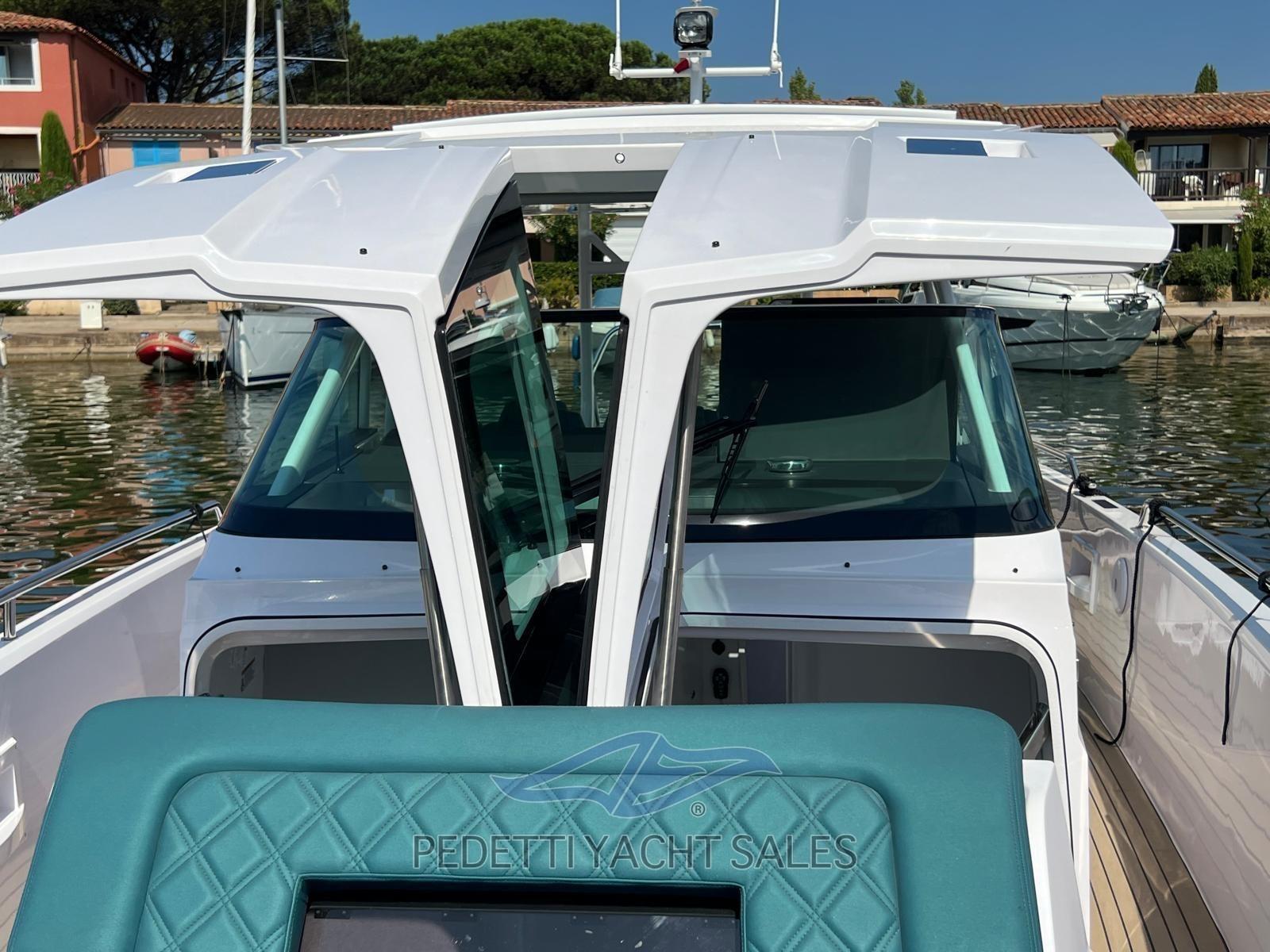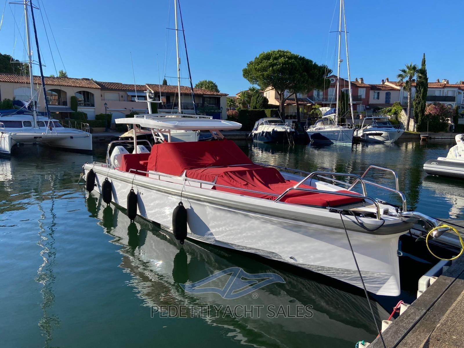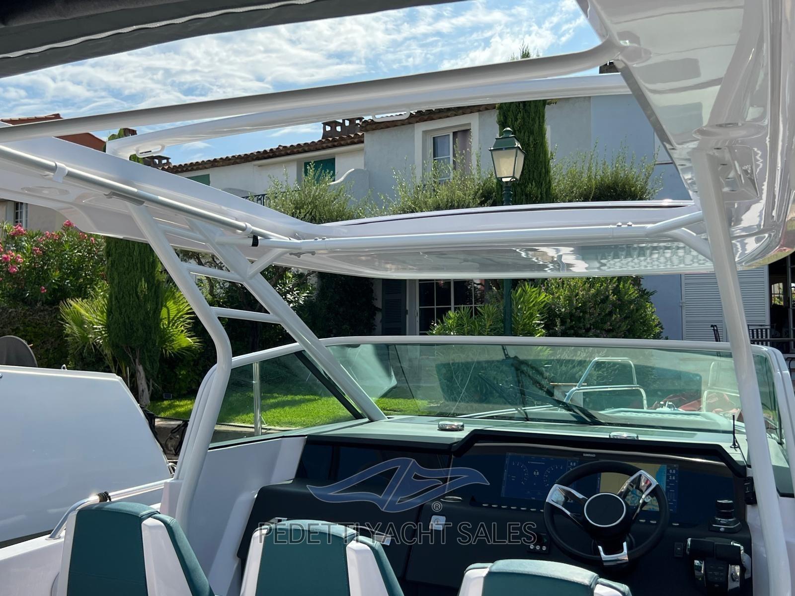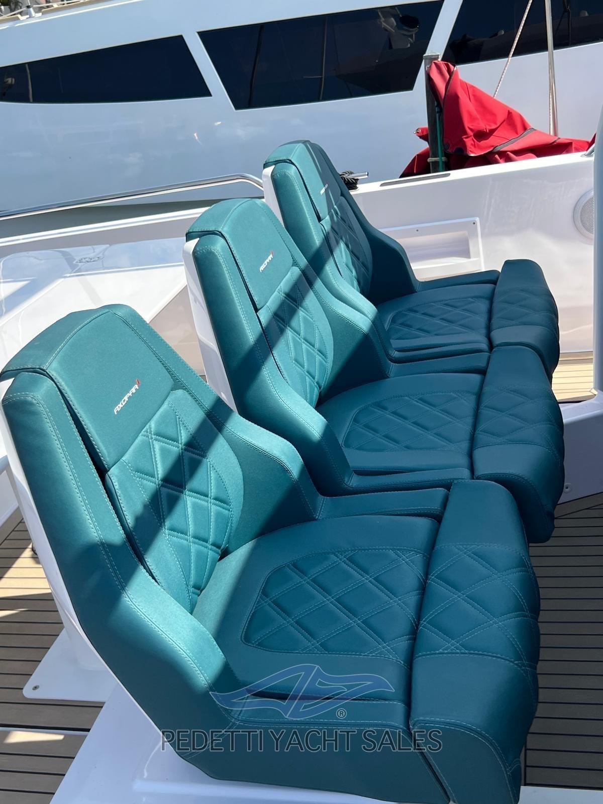Alarme moteur, Alarme de pompe de cale, Ancre (Delta Inox), Eau sous pression, Trim hydraulique (Active trim Mercury), 4 Batteries, Passavant en teck (Flexiteak), Douche de cockpit, Phare de poursuite, Hard top (con apertura), Éclairage de courtoisie, Spots sous-marins, 3 Pompe de cale automatique, Cockpit en teck (Flexiteak), Prise de quai, Rollbar (A poppa sopra i motori), Guindeau électrique, Echelle de bain, table de cockpit, Corne.